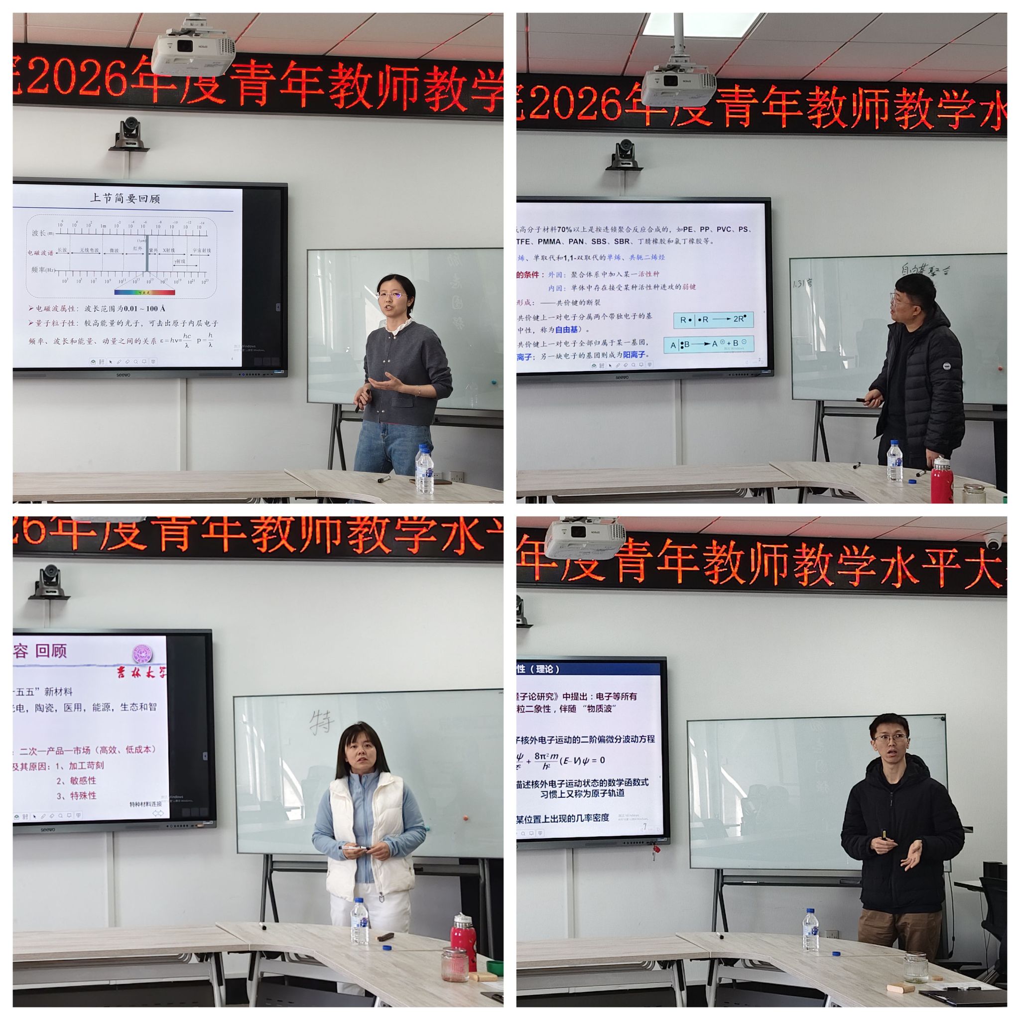 来自于4个专业的青年教师展开了激烈的角逐。参赛教师们精神饱满,思路清晰,充分展现了扎实的专业知识功底,同时辅以精心制作的PPT和板书,呈现了生动精彩的教学演示。
