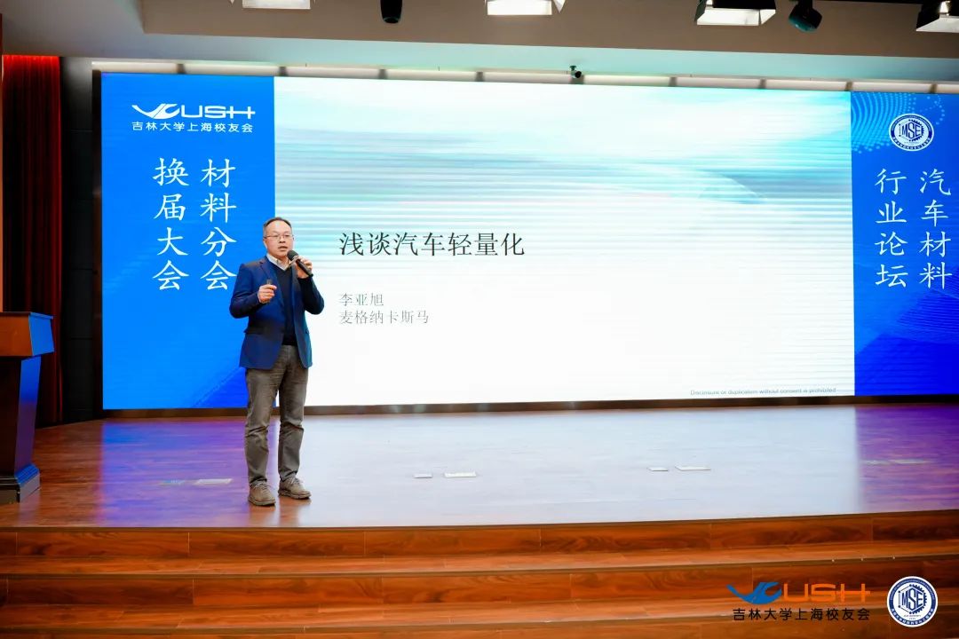 96级校友、麦格纳集团车身与底盘(卡斯马)事业部中国区副总裁李亚旭,他给大家分享了《汽车轻量化浅谈》博彩报告