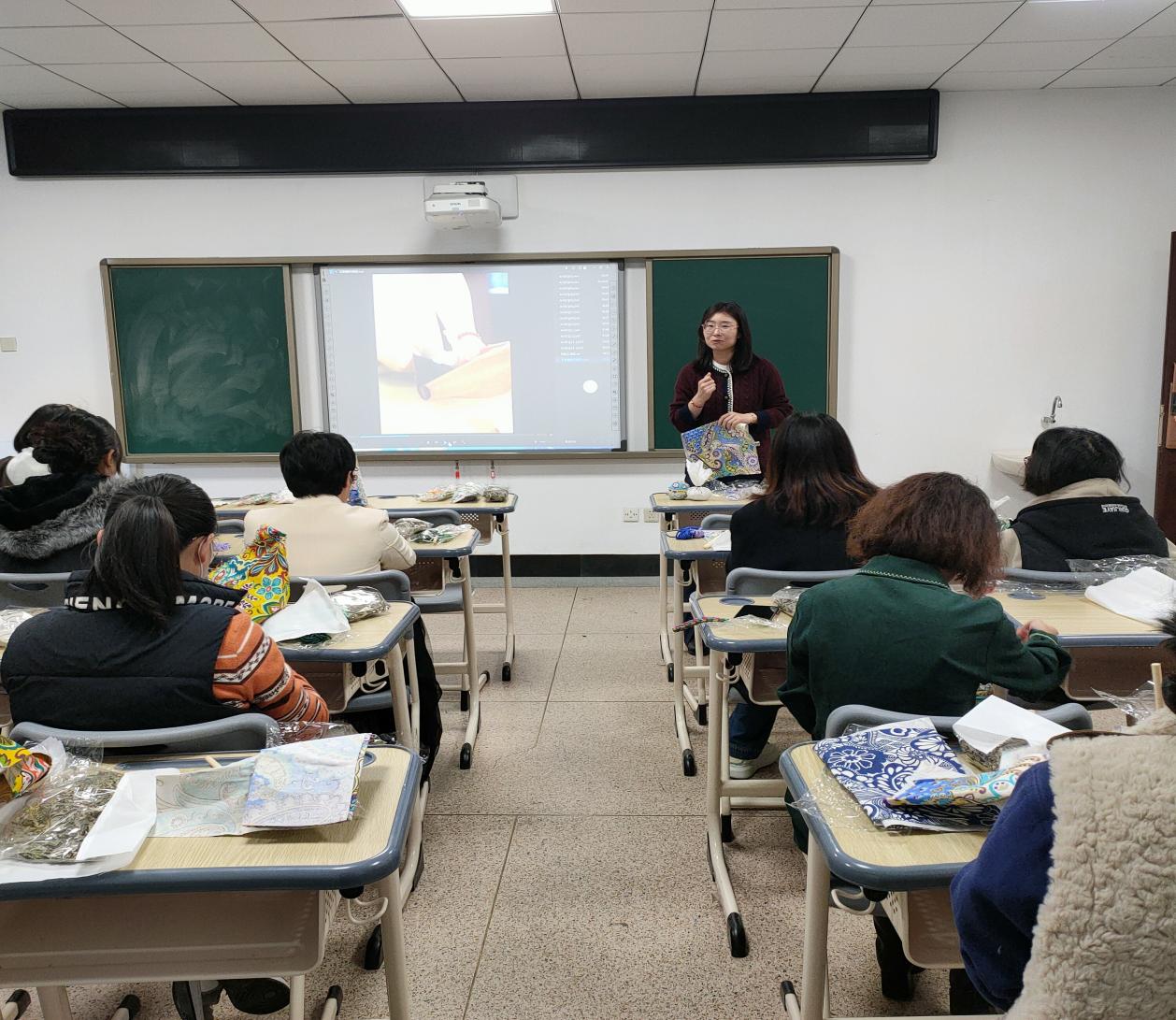 于2023年11月20日,组织女性教职工开展以“映月揽芳华 巾帼心向党”为主题的手工养生艾草锤制作活动。