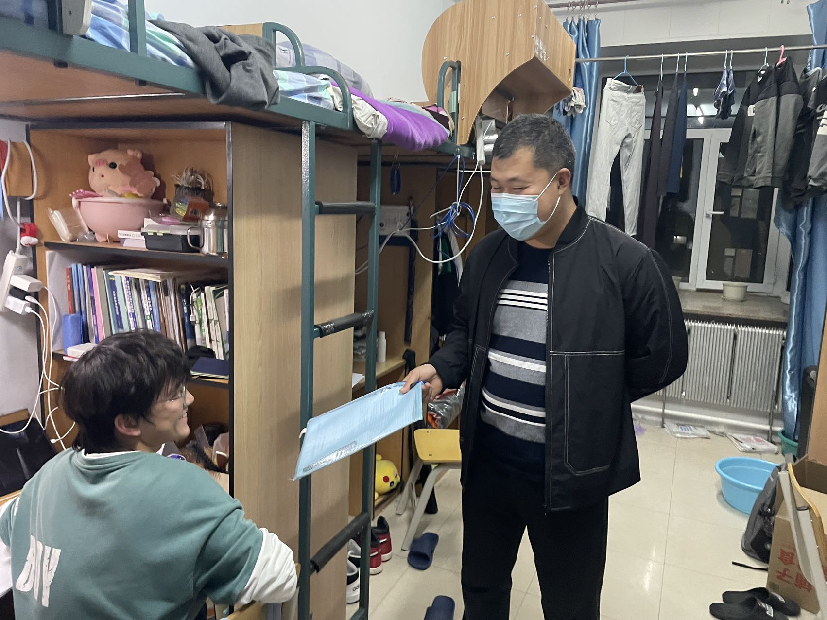 “寝室一小时”微思政:在本周走访寝室过程中,严老师重点走访了关注对象学生寝室,了解同学们在学习和生活等方面的问题和困难,并给予一定的支持和解答,针对报名2023年转专业的大二年级同学,严老师站在充分为同学们未来负责的角度与大家进行了深入交流,充分分析利弊,为同学们进一步选择和持续努力,提供了有益指导,同时,严老师深入寝室进行“晚点名”工作,确保学生在校学习生活的安全稳定。