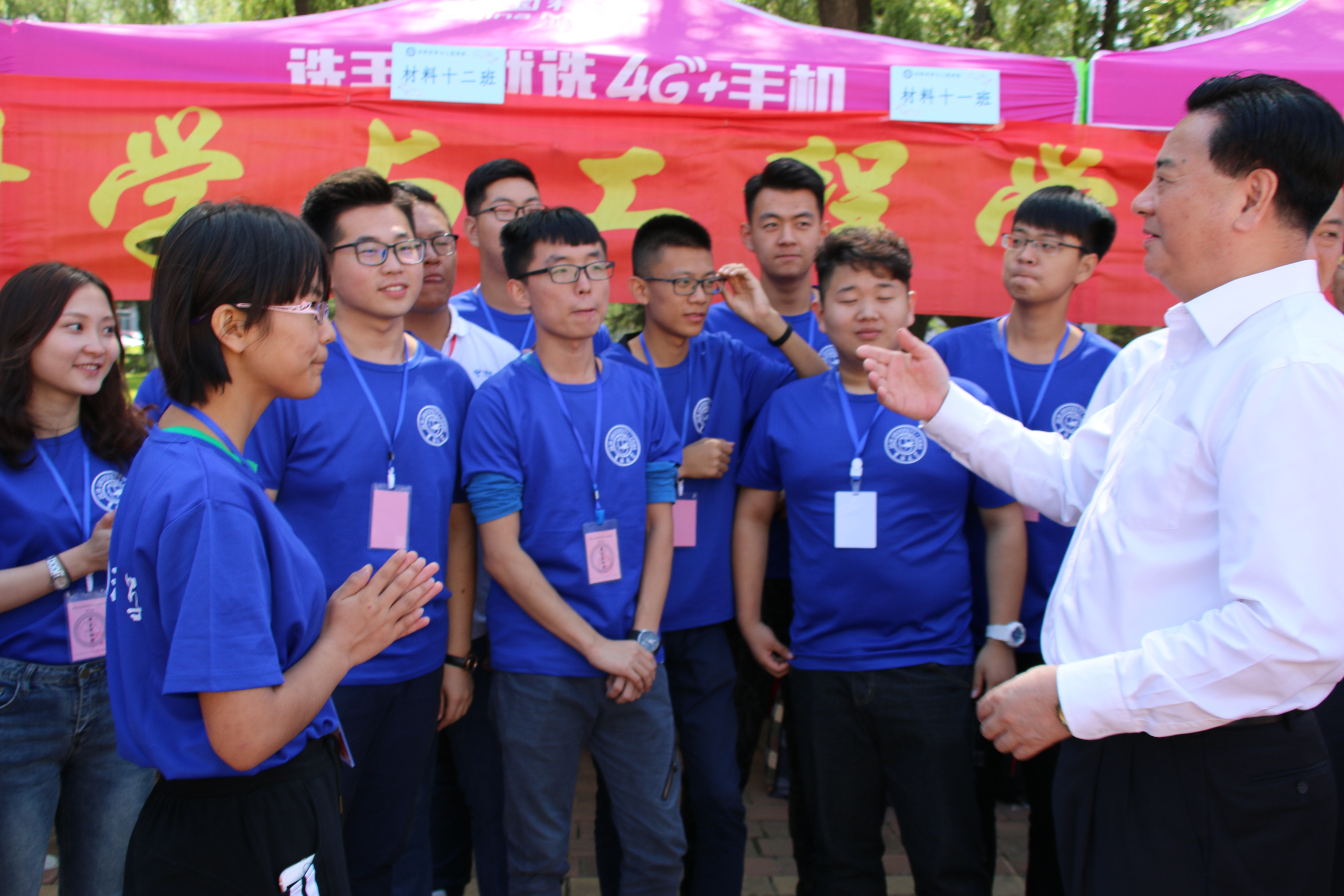的第二天迎新,我校校长李元元莅临迎新现场,视察迎新工作,慰问迎新现场志愿者,并与现场新生亲切交谈,让材料学子感受到了博彩