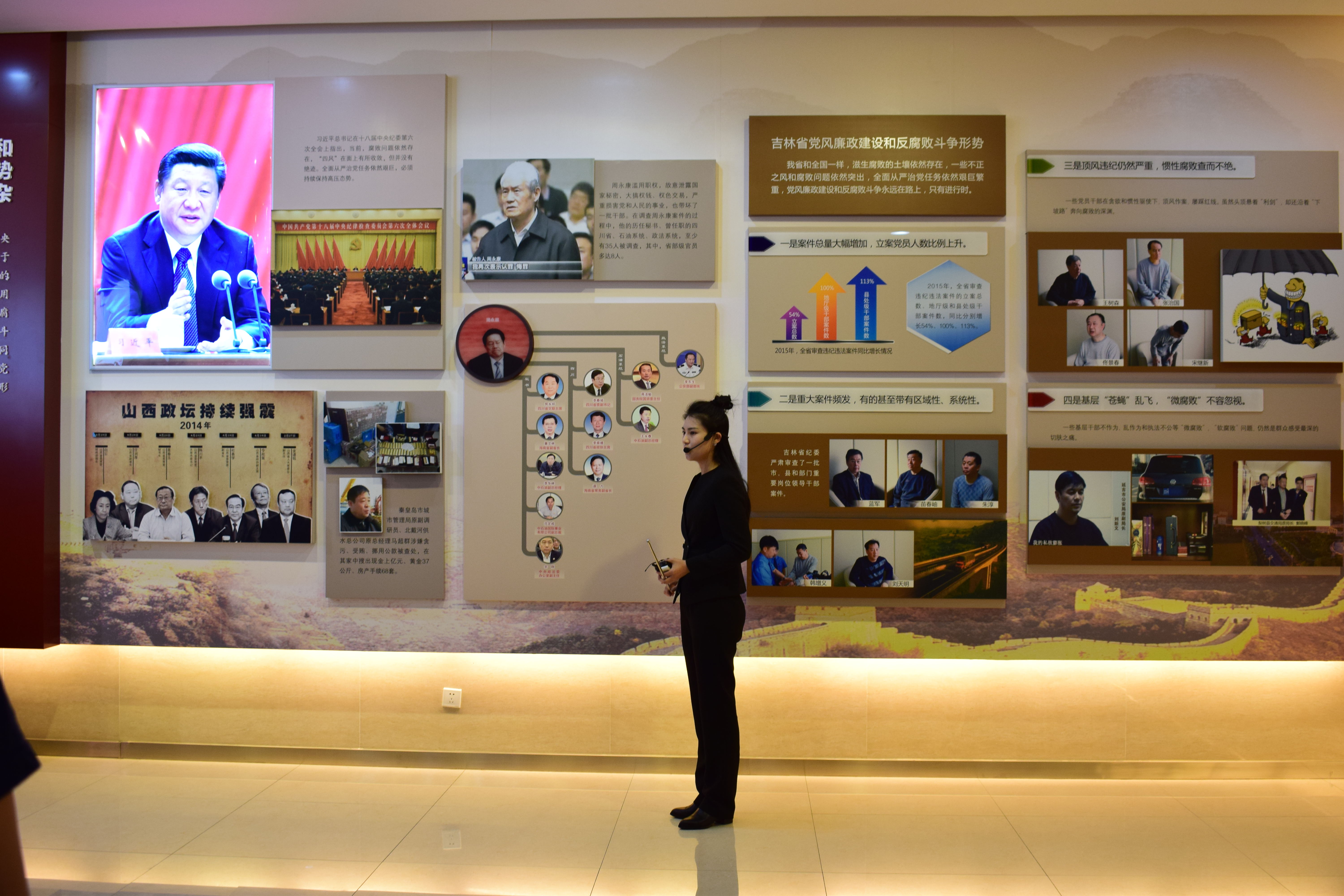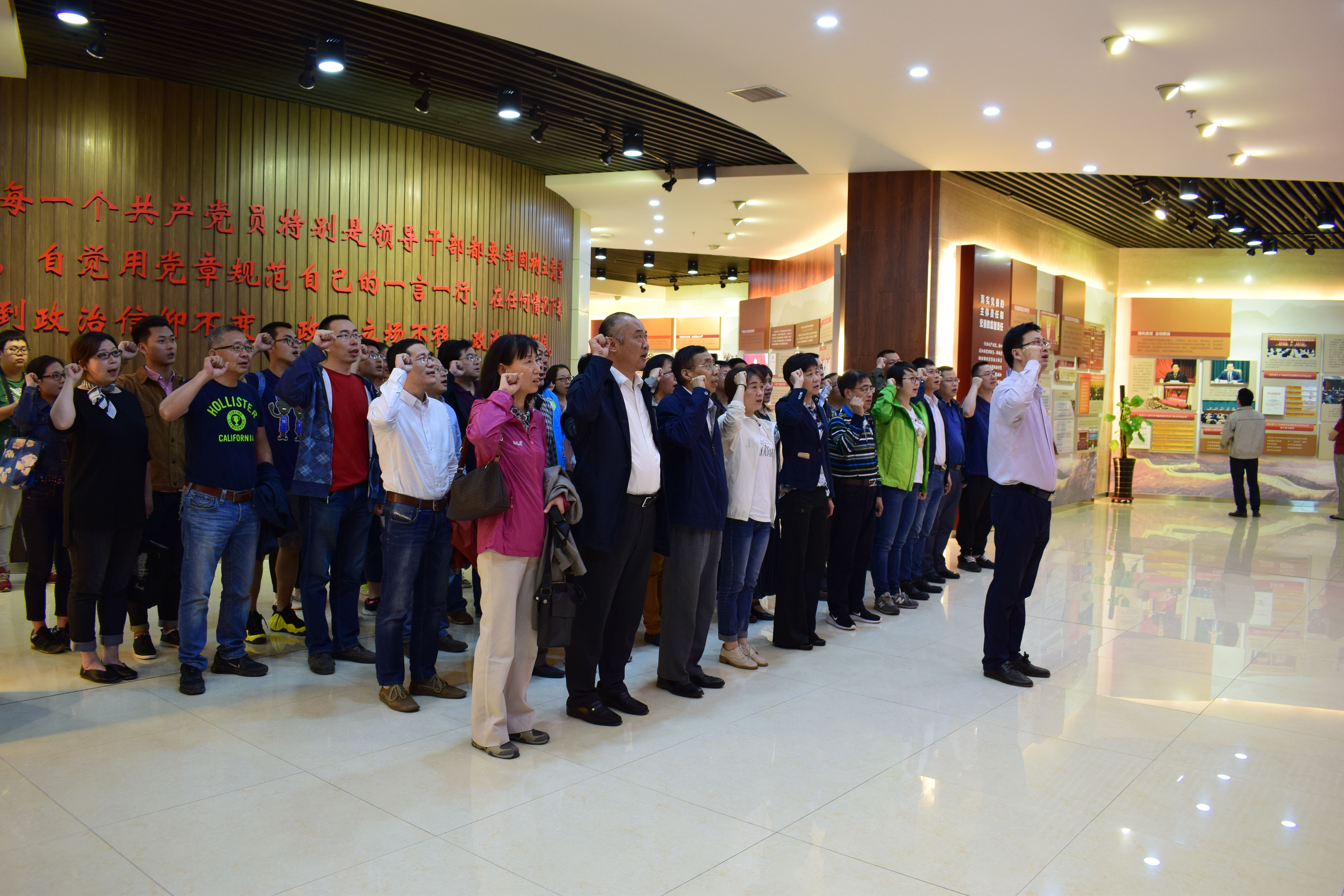 首先,在讲解员的带领下,大家参观了主题为“党风廉政建设和反腐败斗争永远在路上”的展厅。展厅围绕党风廉政建设和反腐败斗争形式依然严峻复杂、唤醒党章意识和严明党的纪律、落实党委的主体责任和纪委的监督责任、深化政治巡视并发挥利器作用以及落实中央八项规定,驰而不惜纠正“四风”五个模块展开,展览资料生动详实,展览通过图片文字、人物蜡像、影像声音等方式全面展示了中国共产党反腐败历程。参观人员仔细聆听、认真记录,并在讲解员的组织下重温入党誓词。接着,参观人员参观了“警钟长鸣”展厅。展厅通过展示一部分高官因腐败落马的示例,表明了决没有不受查处的“铁帽子王”、军中决不允许腐败分子藏身、决不能把国有企业当家业、别让腐败玷污“象牙塔”以及国外决不是避罪天堂等内容。展厅通过落马高官的忏悔录告诫大家手莫伸,伸手必被捉。最后,在讲解员的带领下,参观人员来到会议室观看了警示教育片:《底线》。教育片围绕严明政治纪律、深入落实中央八项规定、严明党的组织纪律、严明党的廉洁纪律、严明党的群众纪律、严明党的工作纪律以及严明党的生活纪律七个模块展开,通过一些真实的案例,警示大家莫忘入党初衷,始终保持纯洁的党性,始终坚持全心全意为人民服务。整场廉政教育展内容生动,效果震撼,所有人都从中受益。
