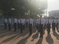 每天早上6时30分,在操场上同学们昂首阔步,精神饱满,每一个动作都力求标准,每一声口号都振奋人心,从不稳不熟练的齐步走、正步走与端腿动作,到整齐划一的步伐,同学们仔细聆听着工作人员的教导,不断地在错误中学习,不断超越自己。在日复一日的辛苦训练中,尽管双臂双脚都十分酸痛,同学们仍保持着良好的精神状态,没有显露出丝毫懈怠的情绪,他们继续将振奋的精神和昂扬的气势贯穿训练始终。