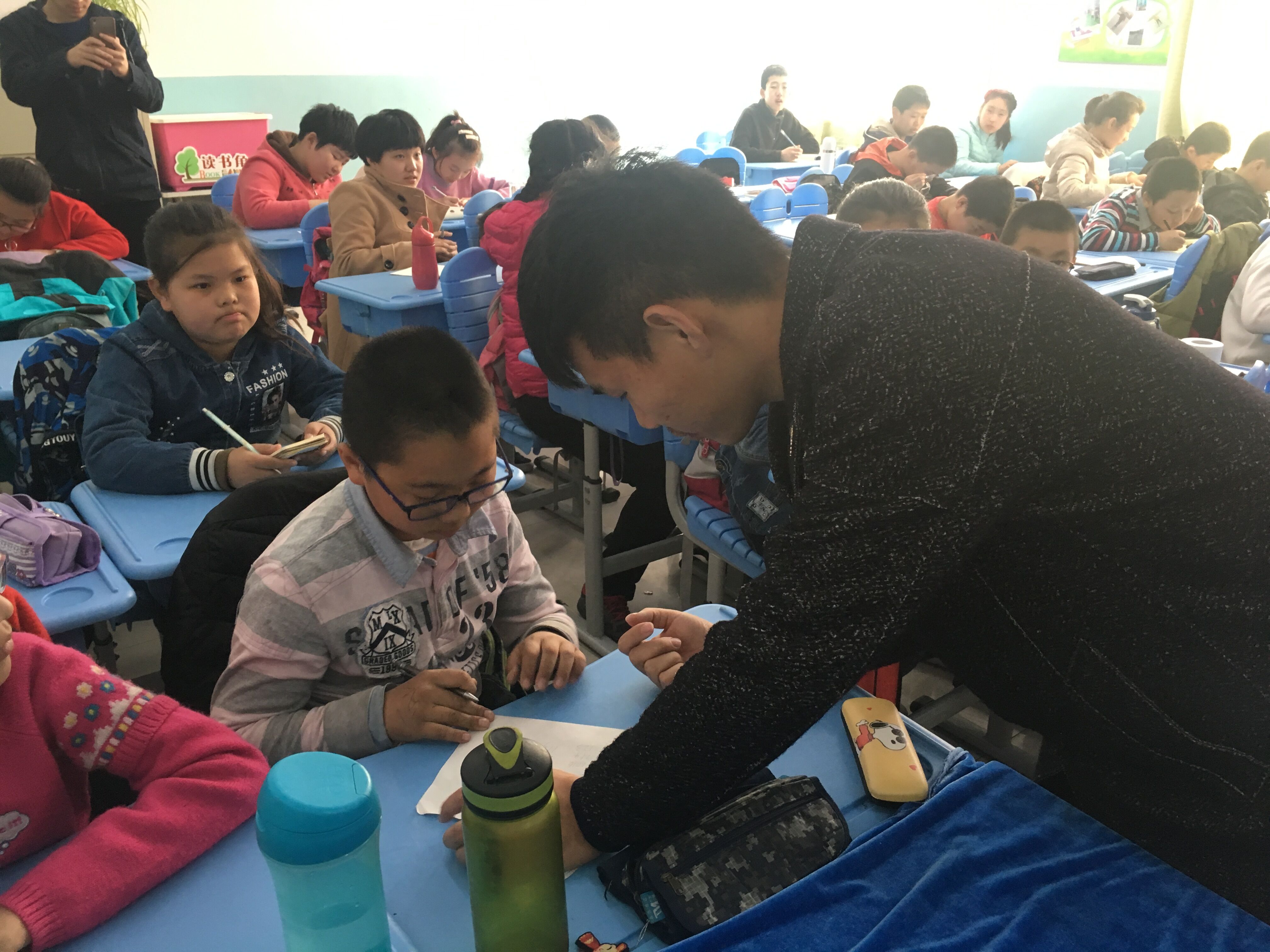 中午12时40分,支教处成员和爱心教师抵达东岭小学,经教务处老师安排后,他们分别到五年级一班和六年级一班进行授课。