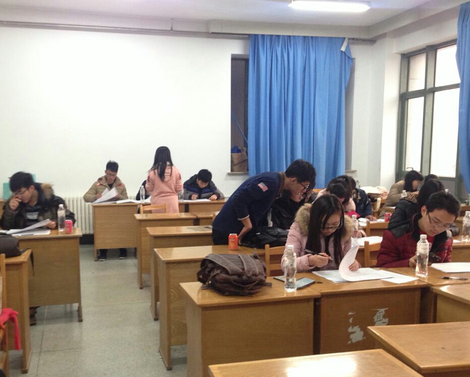 周边拉取赞助,为此次活动筹得资金;与出题老师积极沟通,确保试卷的严密性和准确性;在考试前布置考场并通知监考人员,向各班班长通知考试注意事项。此次期中考试设有高数、英语和工图三个科目,每科考试时长为两小时。各个考场监考人员在考试之前都认真宣读了考试的注意事项,且在考试期间严肃监考,并未发现有考生舞弊现象。每个考生都认真对待考试,使整场考试顺利结束。考试结束后,学生会部分人员及成绩优异的2015级、2014级学生们及时地批了试卷并完成成绩登记工作。