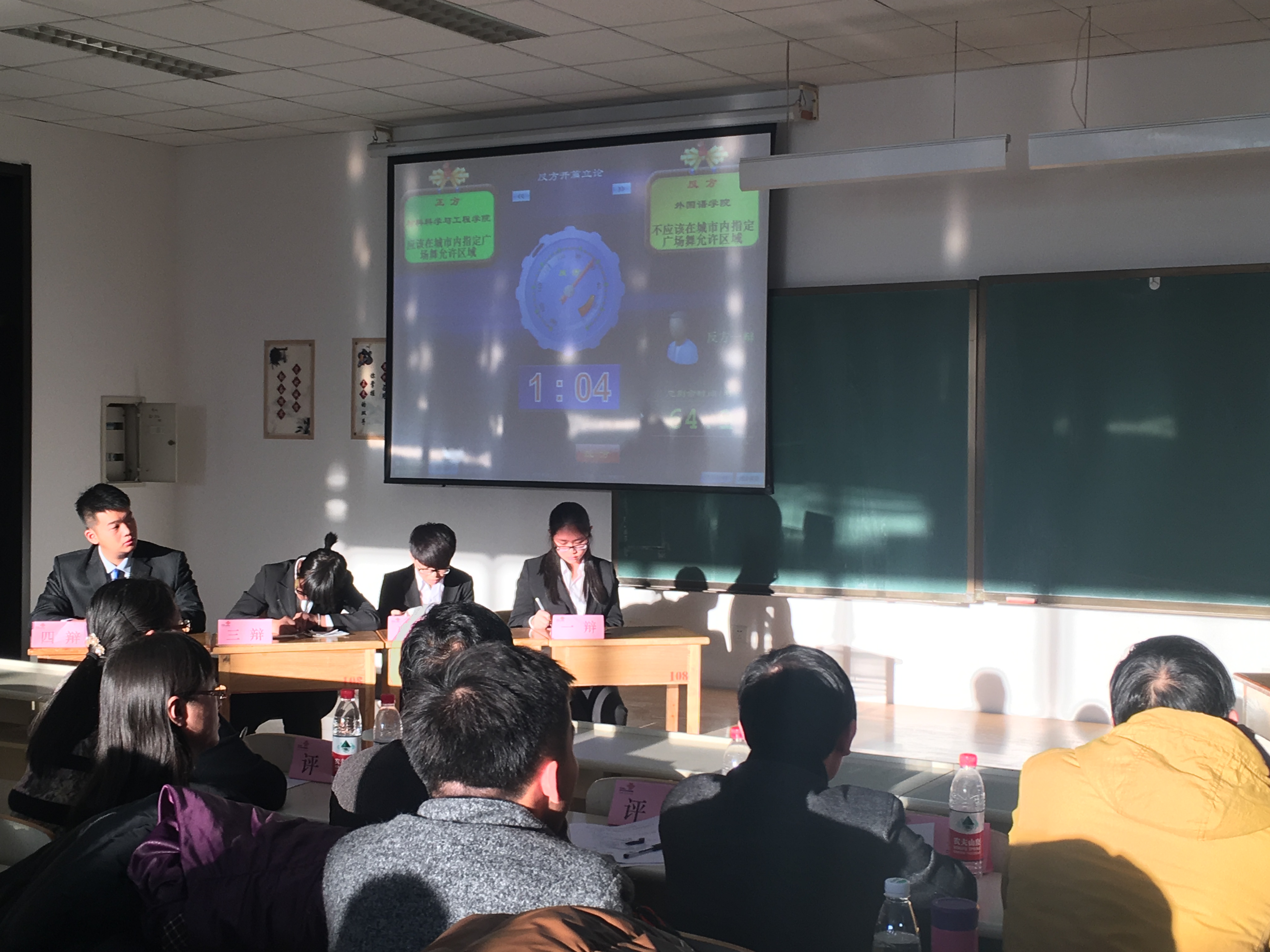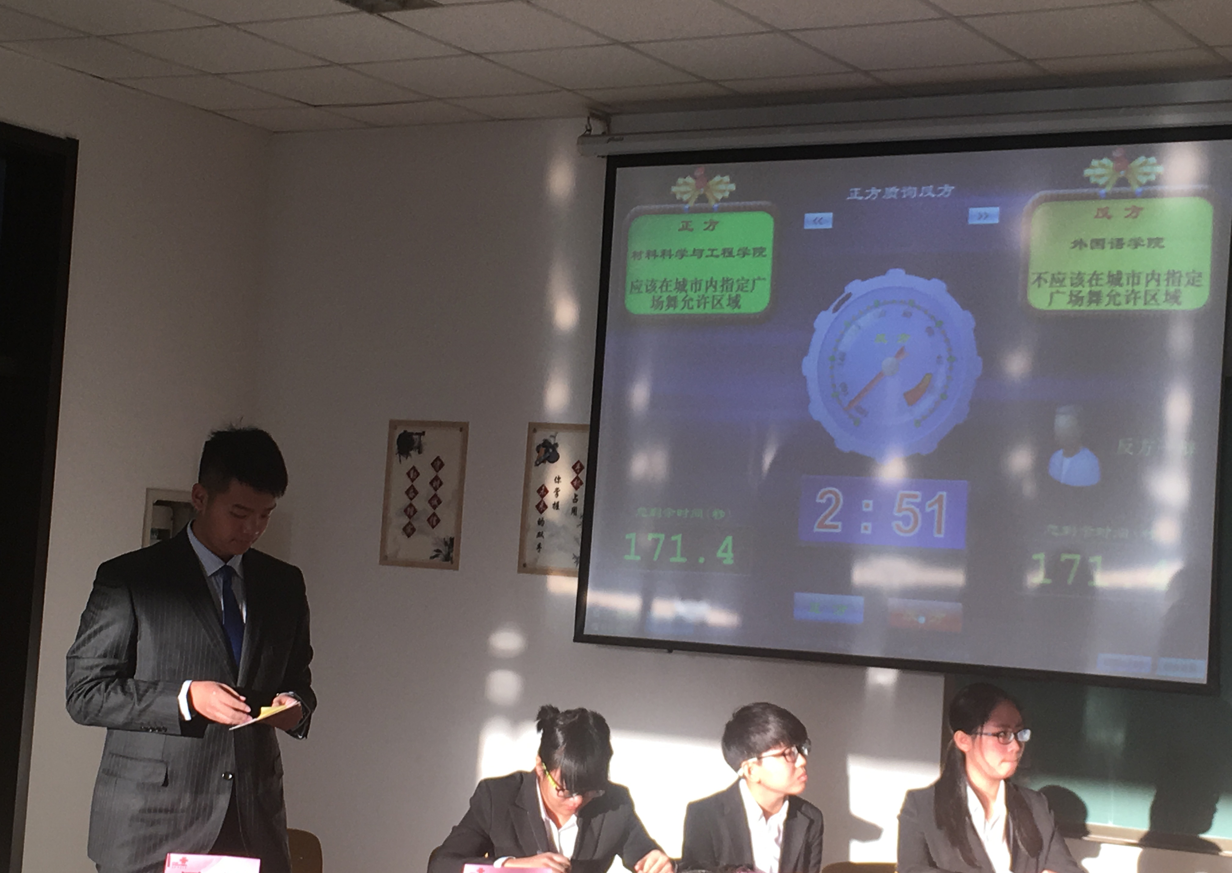 代表队在中心校区李四光楼306室展开了激烈的辩论。