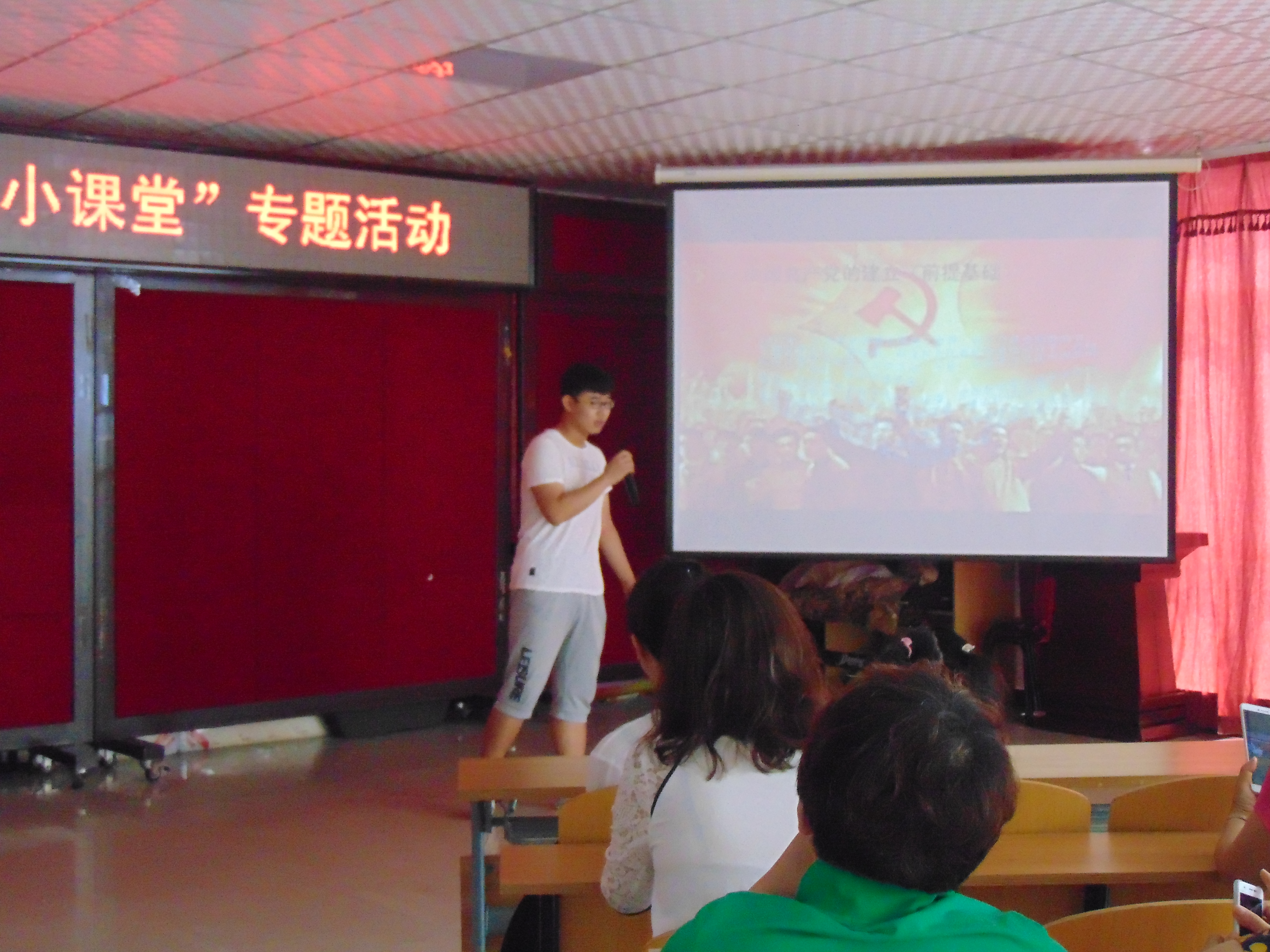南岭校区东门集合,步行前往华阳社区,到达社区后,志愿者们在社区二楼的多功能厅进行音响、投影调试和排桌椅等前期准备工作,随后志愿者们对社区的小朋友、家长及社区的工作人员进行党史讲课,讲课内容包括关于党史的介绍、中国共产党的初心与信仰,在讲课过程中,孩子们认真听讲,并做了笔记。课程尾声,主持人进行总结并宣布活动结束。课后,家长们和工作人员对此次活动表示认可,和志愿者们合影留念,此次活动圆满结束。