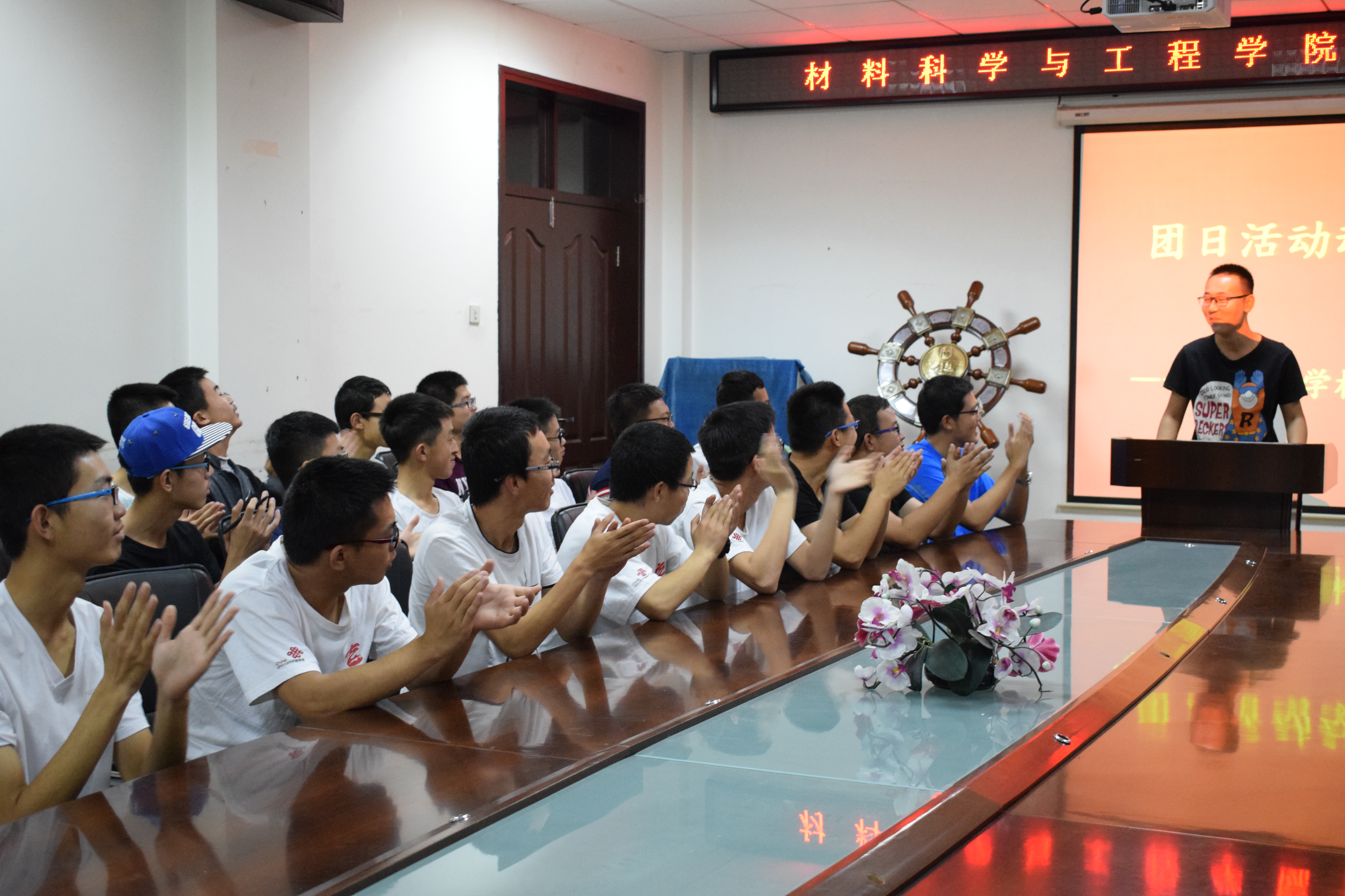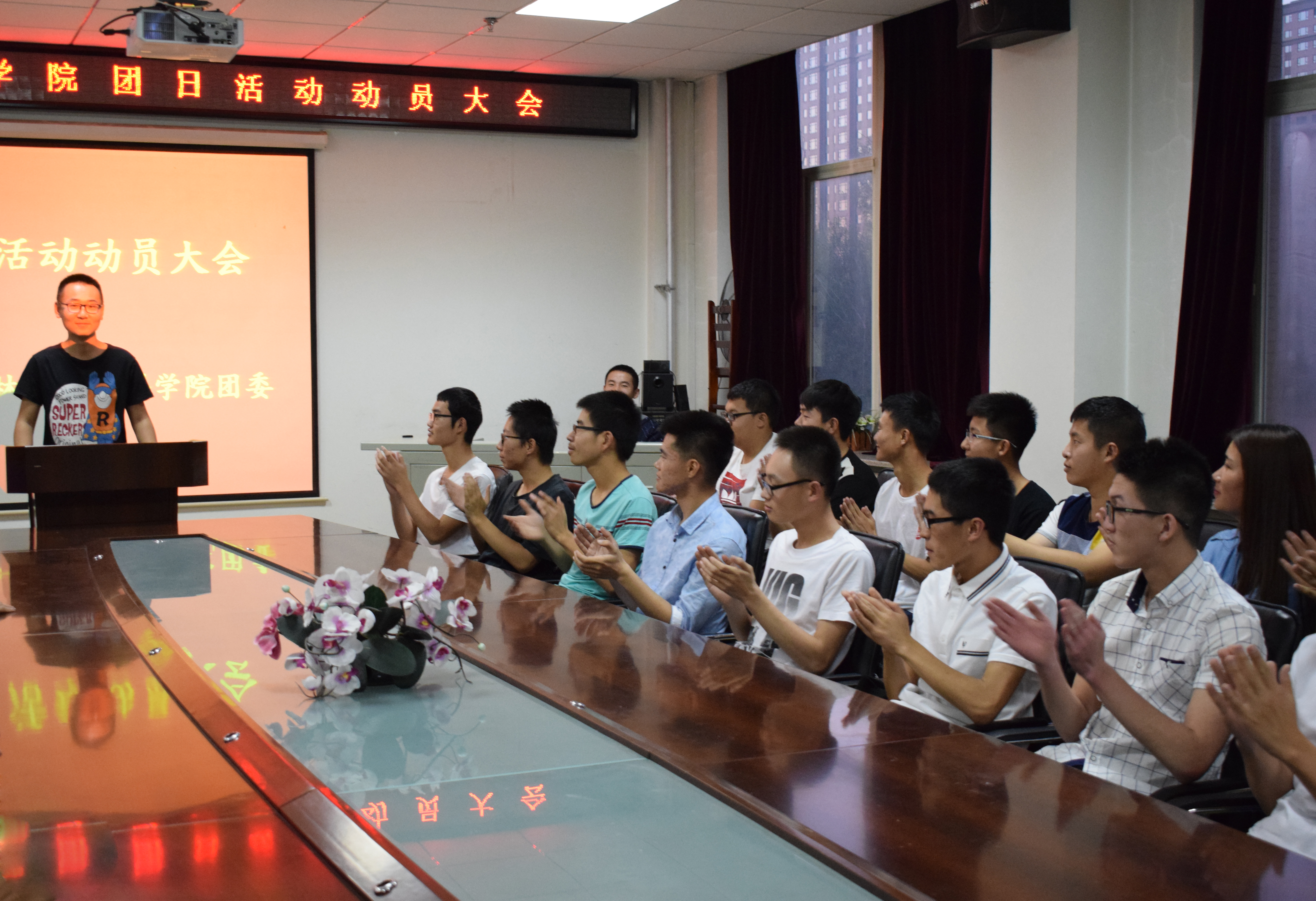 会议在全体参会成员激昂的团歌声中拉开序幕,张老师发表讲话,他充分肯定上一学年团日活动所取得的优秀成绩,期望参会成员为团日活动带来创新,预祝团支部在团结、奋进的活动中可以取得骄人的成绩,再创辉煌。随后往届团日活动获奖班级代表通过PPT的形式向到场的同学传授活动经验,介绍确定具体活动的思考方式与方法,对团日活动的意义进行了阐释,指出“团日活动就是以团支部为单位进行的一系列有益于德智发展的活动,其活动围绕一定的主题展开。团日活动的现实意义是团结支部成员,并扩大支部影响力,加强支部与社会的联系,提升成员的整体素质。”并在会上展示了其团日活动取得的成果,讲述了在其中发生的有趣故事。期间,主讲人分发了他们活动的相关资料。最后,演讲者表达了对同学的殷切希望,祝愿即将开展的团日活动能够顺利进行。