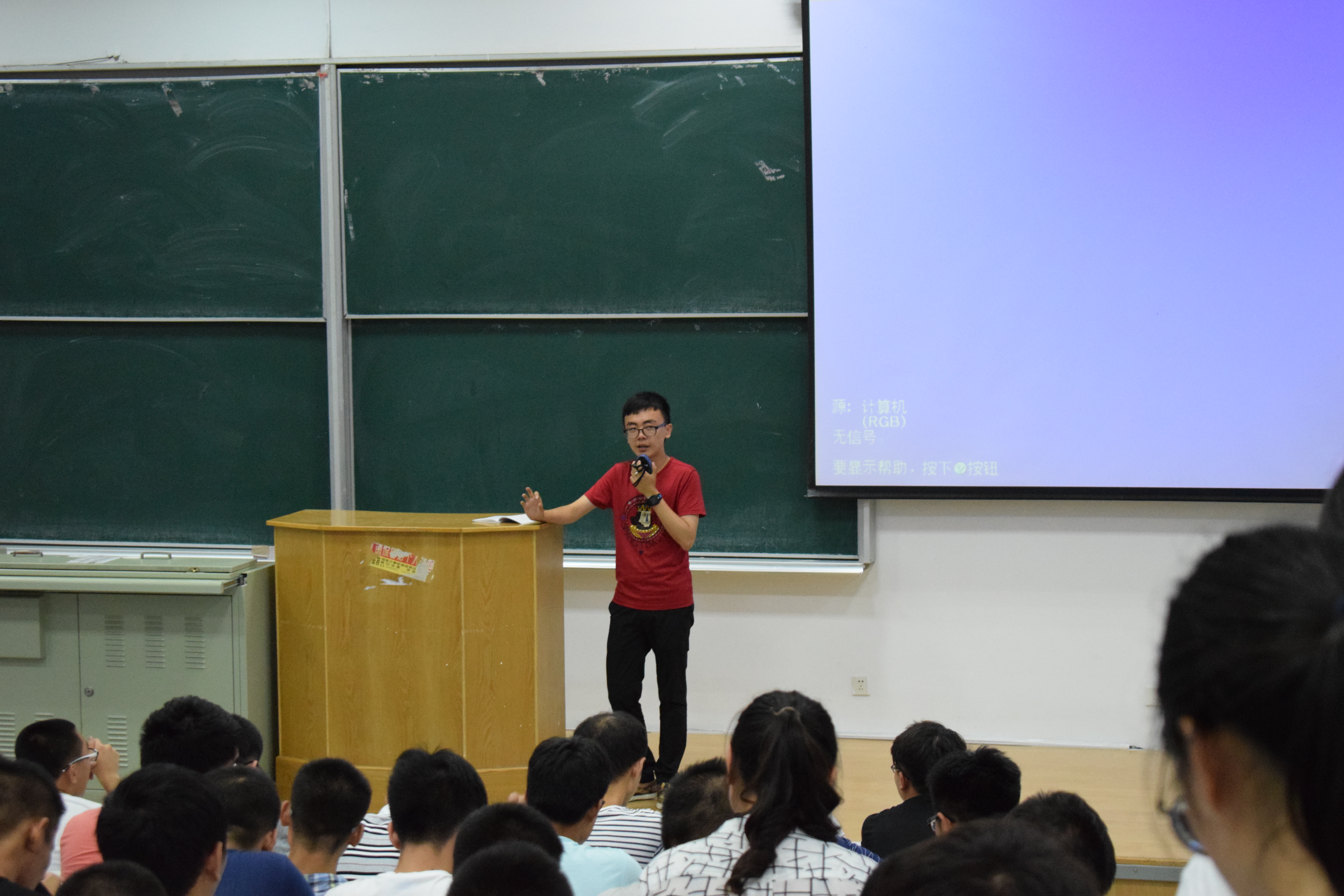 在逸夫楼A511开展了新生填写注册信息卡的工作,2015级辅导员佟昊天莅临现场,进行指导。