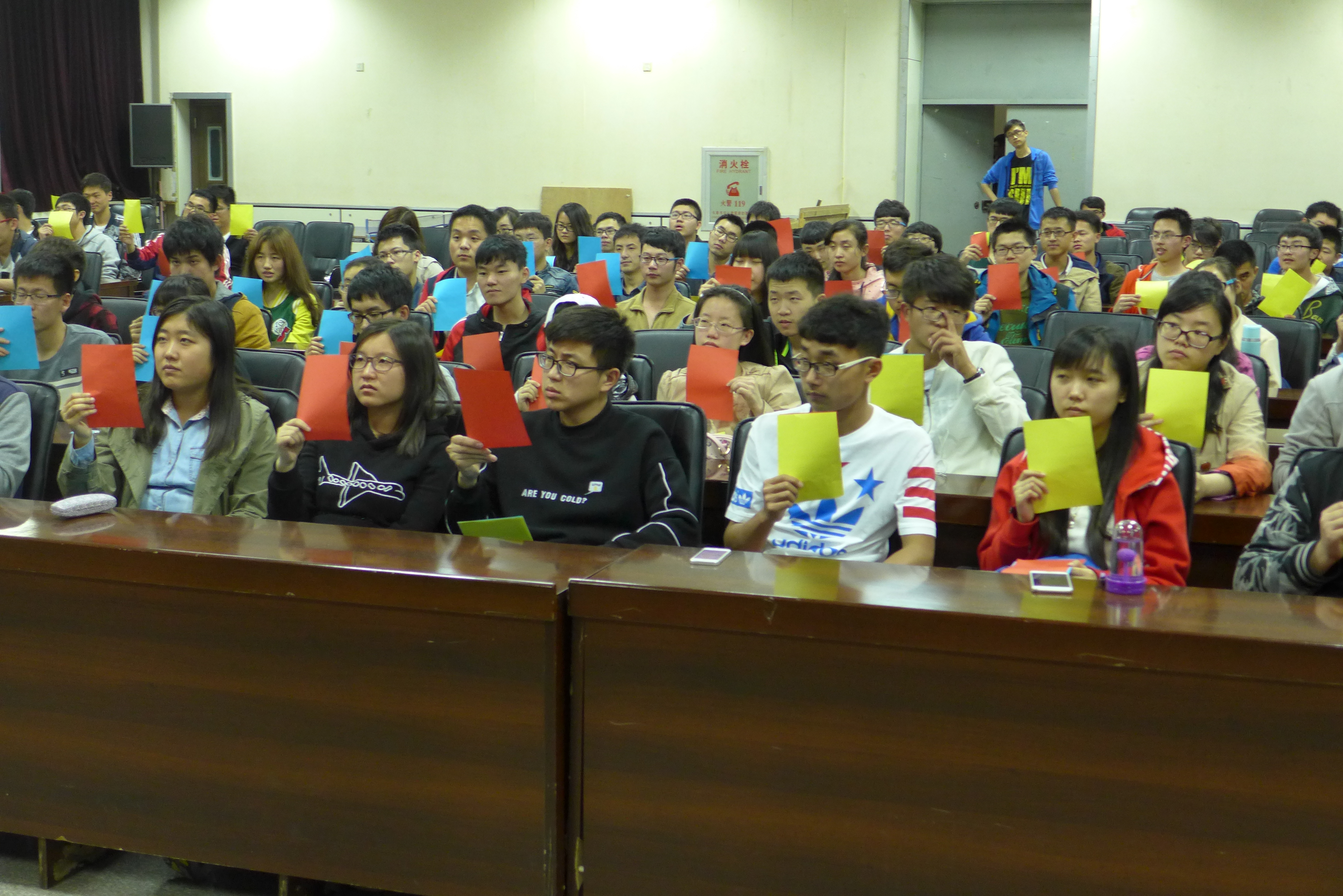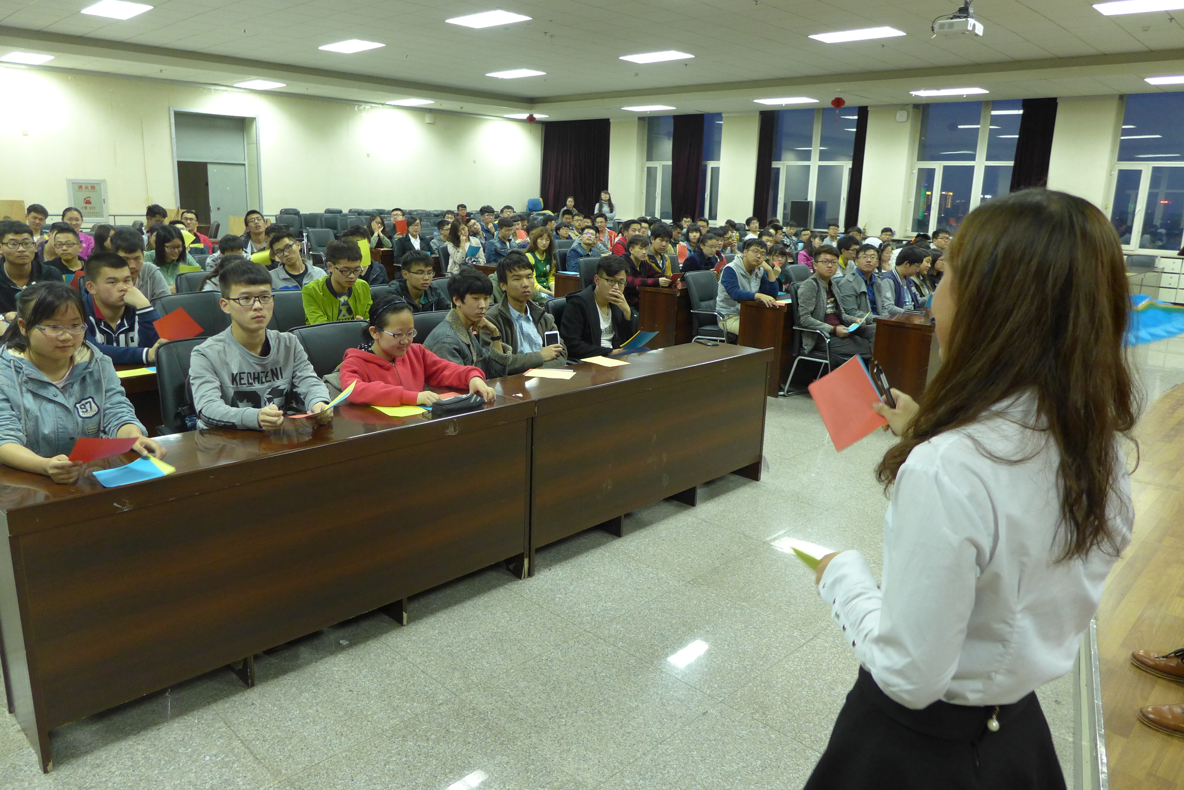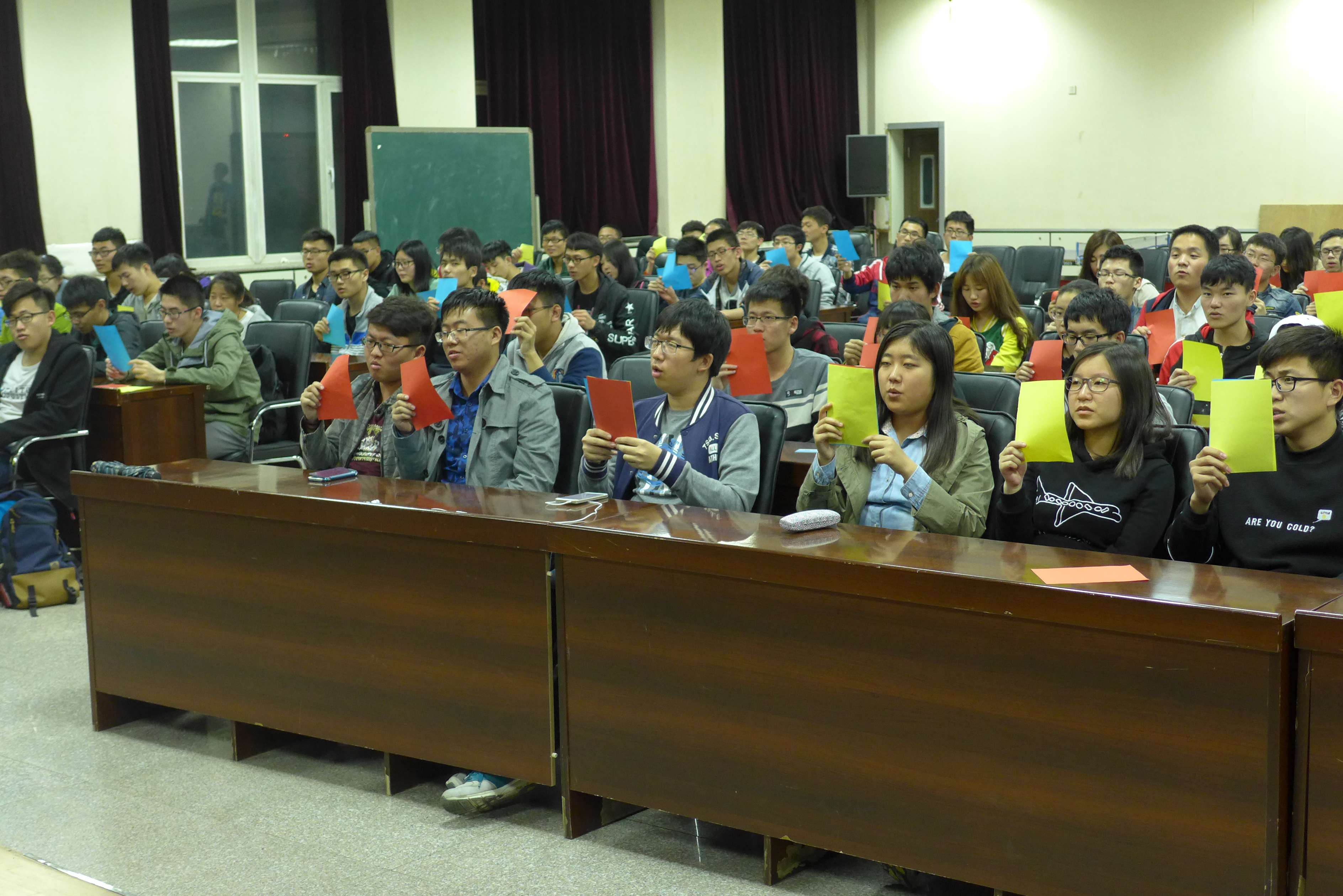 排练于晚8:30正式开始,几位团委副书记首先向大家交代了运动会当天观众啦啦队的活动流程安排、应带物品及运动会当天的注意事项。在确定了最终人选后,几位负责人着重地对队形进行了安排,包括手持三色变色扇子摆型、口号的敲定,每个动作、每个配合都进行了统一的训练。“材料群雄,气贯长虹。鲲鹏展翅,笑傲苍穹”,这句嘹亮的口号是他们青春的誓言,也是材料博彩官方网站