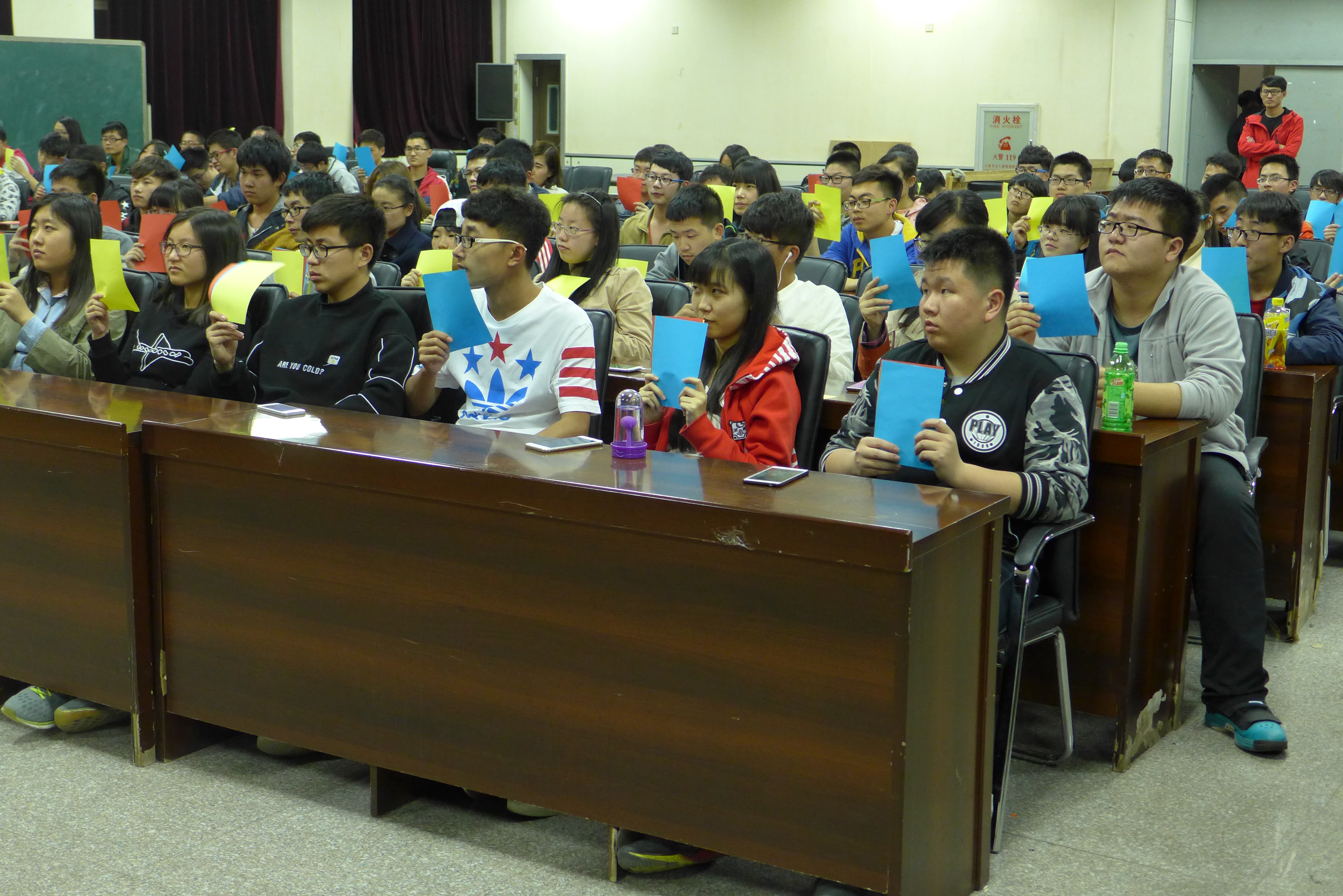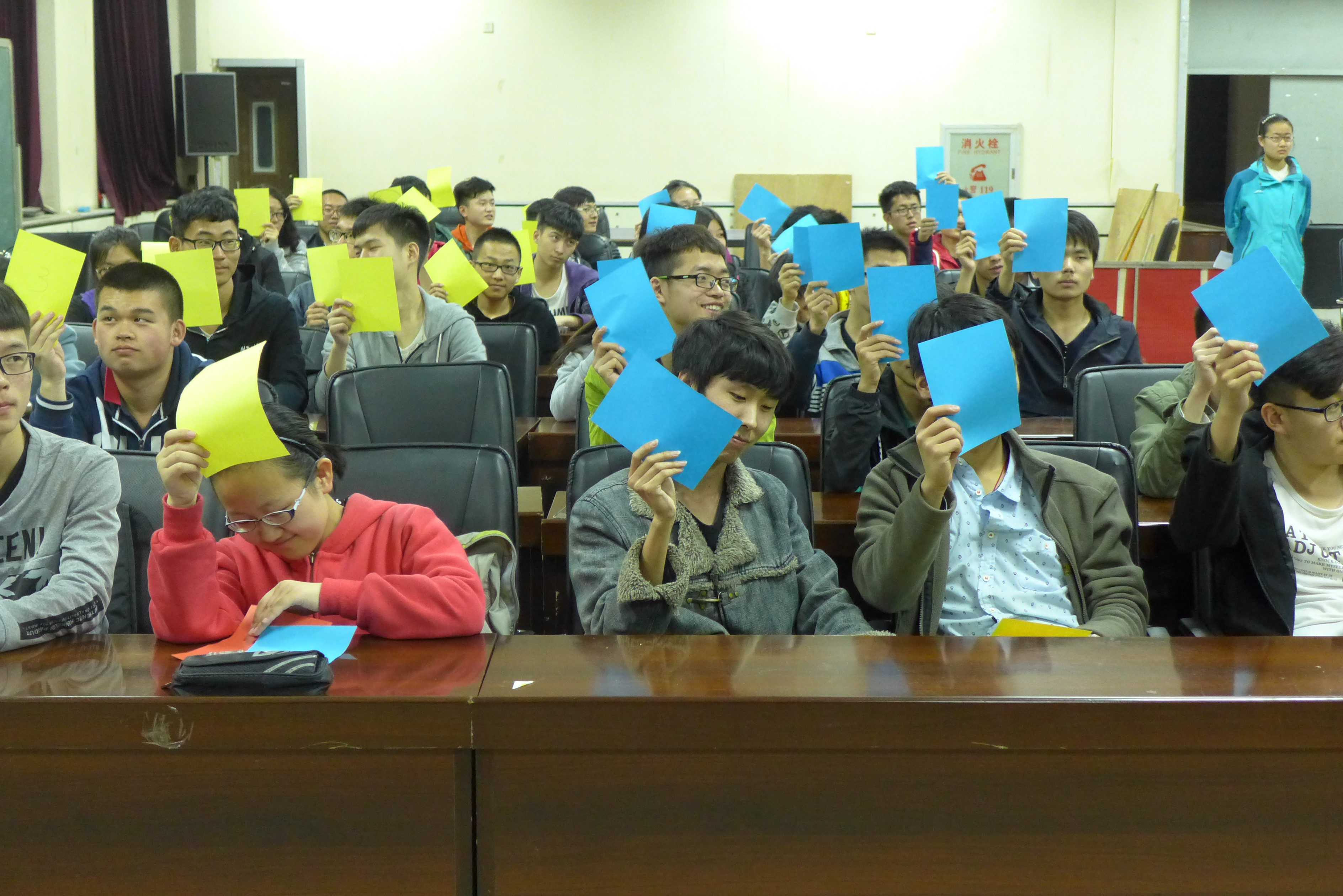 学生勇于挑战困难的精神和积极进取的决心。复习过后,同学们用彩纸代替纸扇进行了新的表演内容的训练。学长学姐们将同学们划分成几个小组,各个小组的同学跟着学长的口令以不同顺序举起红、黄、蓝三种颜色的彩纸,再辅以口号相配合,组成了一场完整的表演。一开始,由于部分同学态度散漫没有充分重视训练内容导致整体动作散乱,远远达不到整齐利落的标准,但经过学长学姐们一再强调,观众队伍作为运动会上博彩