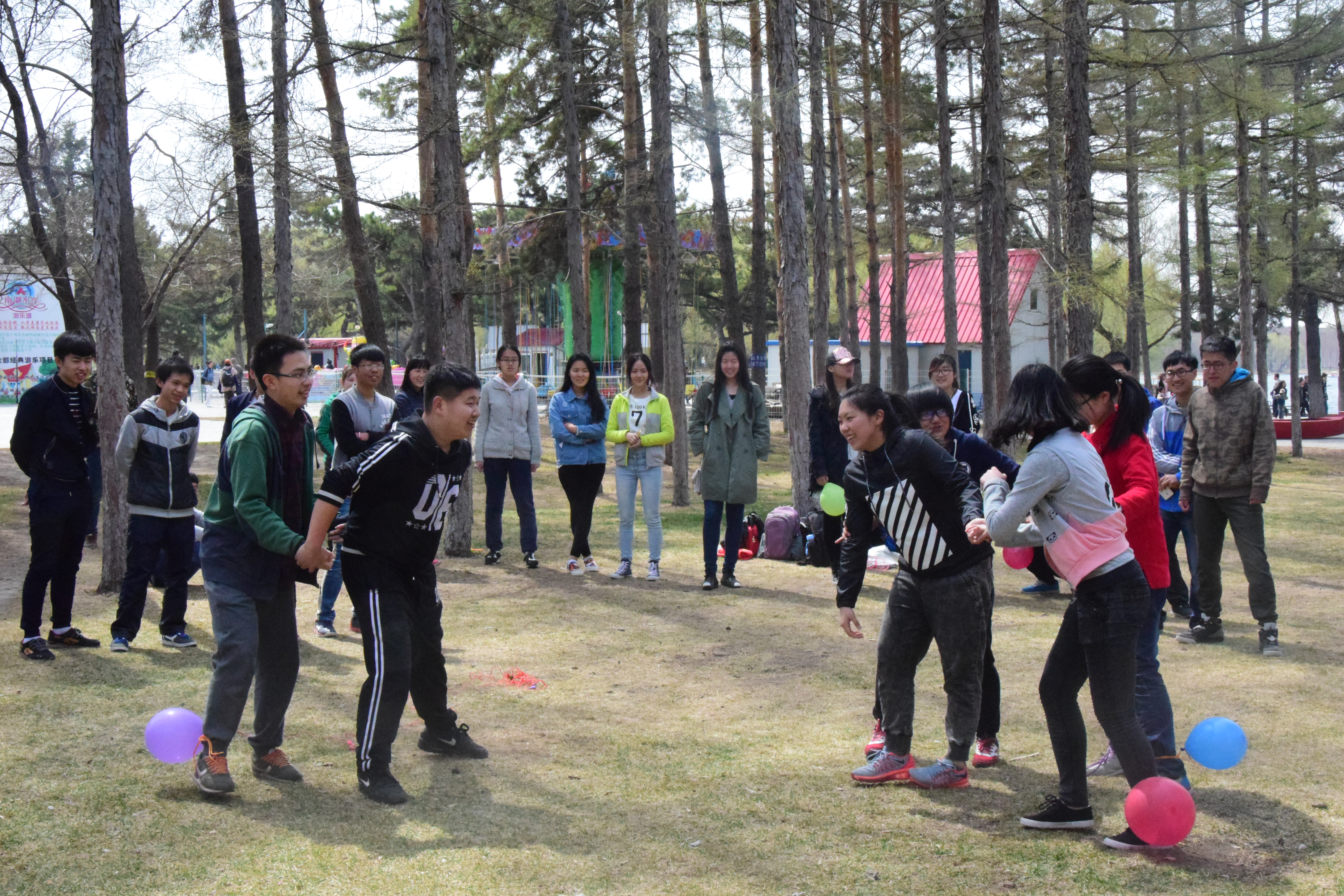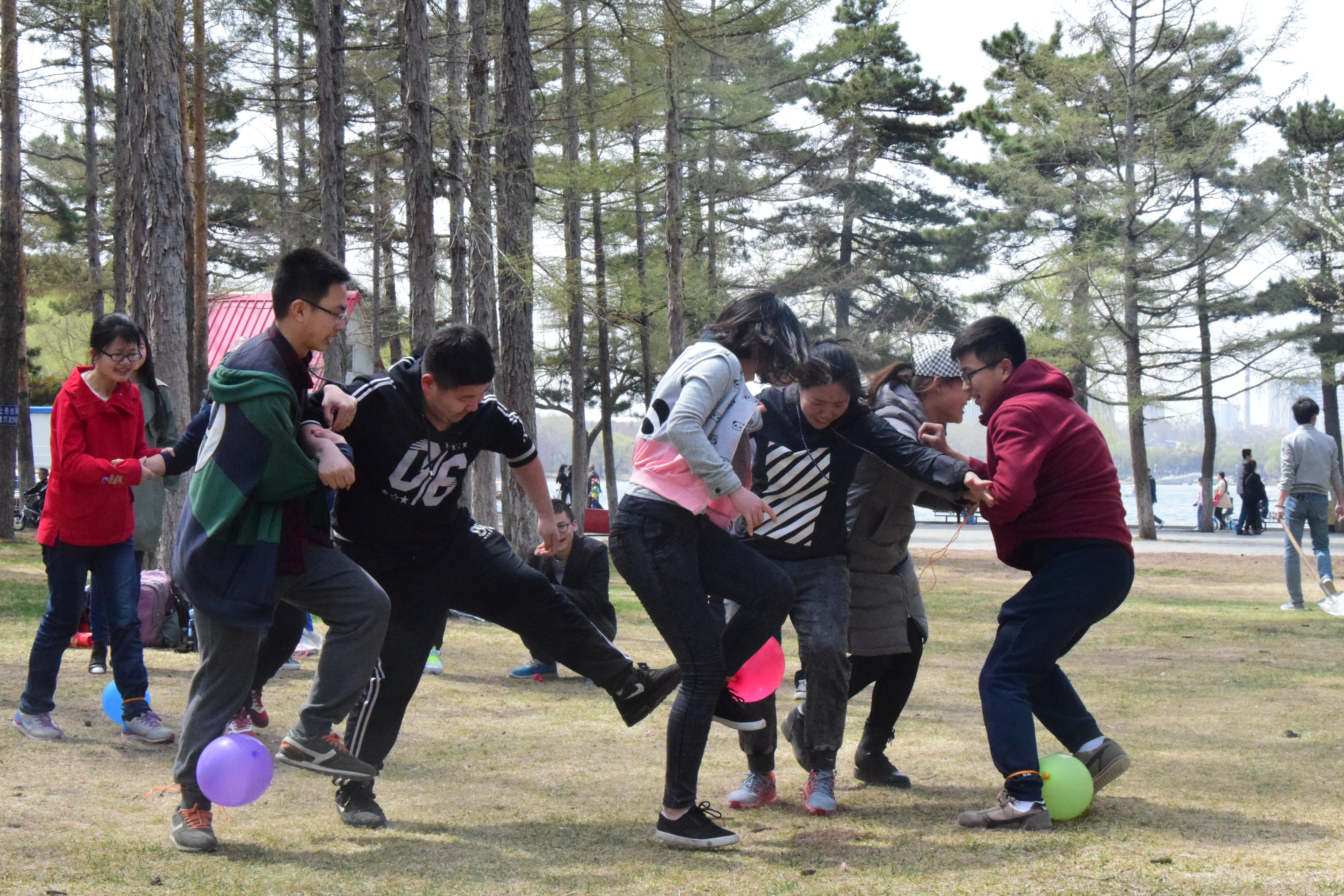 活动在“默契游戏”中拉开帷幕,每组两人分别站在遮挡布前后,并改变自己位置,布被撤掉后由前面的人背起身后的人,若为同组,迅速跑到指定地点解开绳子,若不同组要尽力阻止其完成任务,在考验默契的游戏中拉近学生之间的距离,使大家逐渐融入到活动中。接下来的游戏名为“穿越雷阵”,被蒙上眼睛的队员在同伴的牵引下穿越由其他同学组成的“雷阵”,这需要队员对同伴的充分信任。“指压板接力赛”要求两人一组,翻越障碍,到指定位置挤破气球,并在指压板上共同完成十次跳绳,用时最短者胜利,让大家在欢笑的基础上,懂得了团队合作的可贵。最后进行的游戏叫做“踩气球”,每组需要踩对方的气球,同时保护好自己的气球,气球未爆的一组胜利,这项游戏考验了同学们团队合作的能力。游戏之后,由负责人总结讲话,大家打扫活动场地,清点人数,之后共同返回博彩