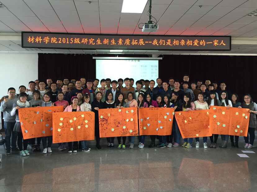 的材料物理与化学、材料学、材料加工工程和材料工程的四个专业为单位开展,分阶段对同学们进行团体心理辅导。活动现场氛围轻松快乐,同学们热情高涨,活动通过丰富多彩的游戏帮助同学们更快的融入到班级这个大家庭中。“一分钟鼓掌”、“巧记名字”等小游戏迅速拉近了班级同学间的距离;“集体登陆”、“解手链”和“人椅破冰”更是让同学们在游戏的同时树立了团队意识,学会了信任;最后,同学们写下自己的期望,共同绘制了“团体树”并合影留念。