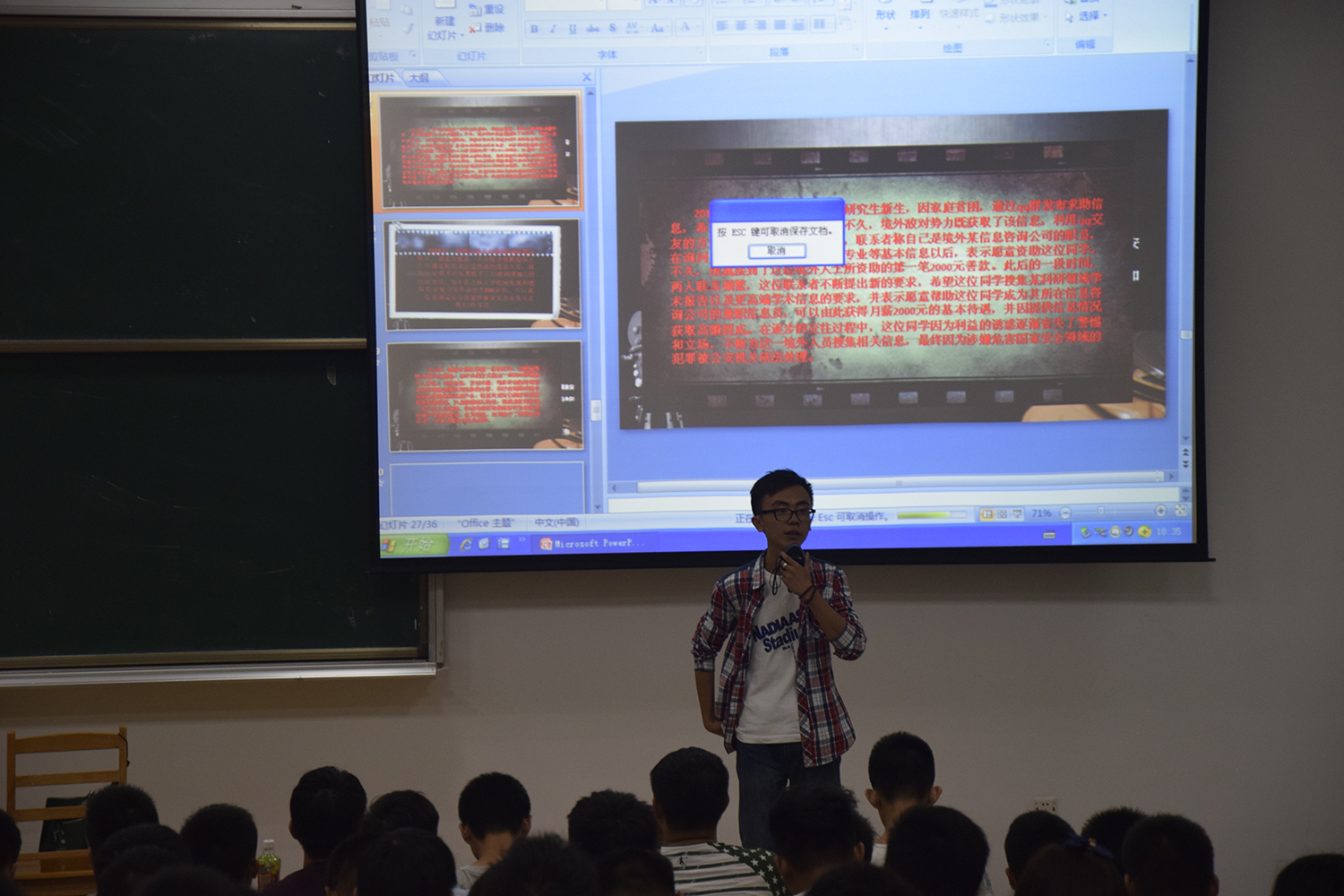 在逸夫教育大楼B110面向2015级全体新生举办了大学生安全教育讲座。本次讲座由博彩