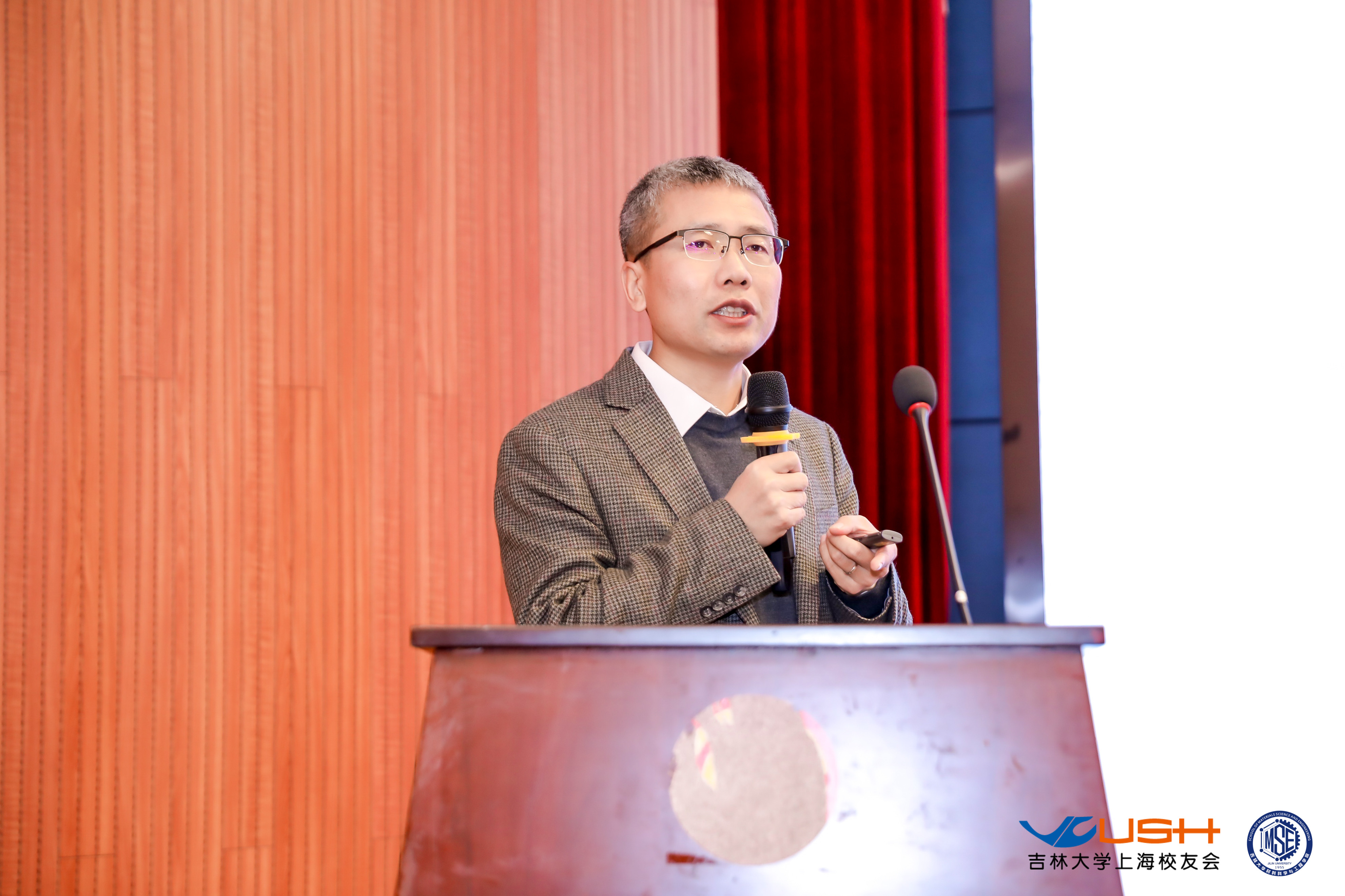 1997级校友王洪俊首先代表吉林大学上海校友会致辞,他对各位嘉宾的到来表示欢迎,他肯定了材料分会过去几年中在为校友们交流与合作搭建平台方面所做的工作,并表示今后上海校友会将一如既往地支持材料分会的工作,推动材料分会与上海校友会其它分会和专委会之间的联动与协作,更好地服务校友。