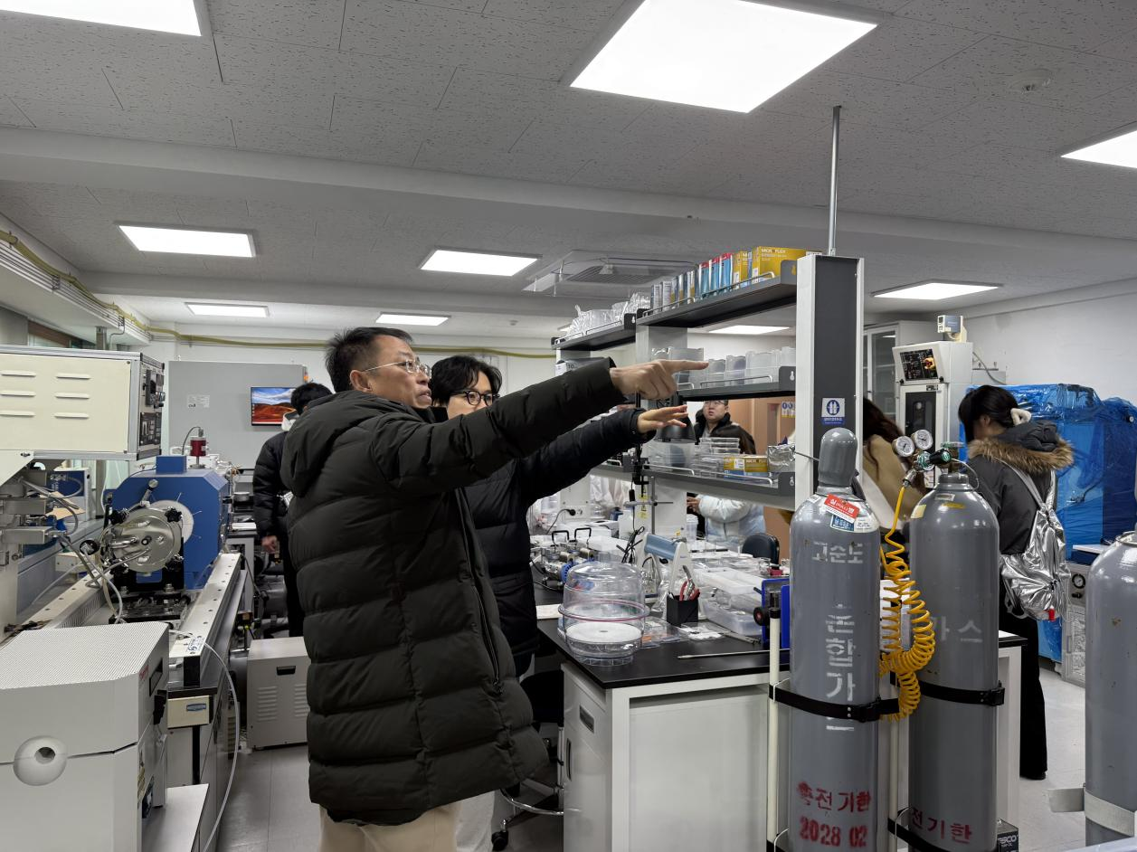 ,展示了双方在新型材料设计、加工技术及应用探索等方面的最新研究成果。学术交流期间,双方教授和博士生对关键技术与研究方向进行了深入讨论,开拓了新的科研思路和合作空间。会后,吉林大学代表团参观了校园实验室及研究平台,展示了高丽大学在材料科学领域的先进实验设施与创新环境。