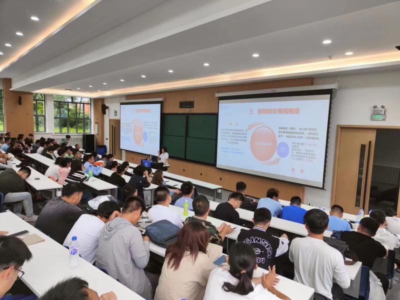 孙健老师首先介绍了校医院的基本概况,包括校医院的具体分布、诊断科室和服务职能等,结合学生入校后的就医需要,着重向新生同学们介绍了医疗证的使用说明以及医院转诊与报销制度等相关工作流程;随后,孙老师介绍了有关大学生健康教育、应急救护培训等课程内容,让同学充分意识到健康教育的重要性;最后,孙老师以简洁易懂的语言,向同学们介绍了有关新冠肺炎、艾滋病、结核病、水痘、病毒性肝炎等常见传染病的防治方法,尤其强调同学们要提高对传染病的预防意识,加强有关防范传染病的卫生意识。