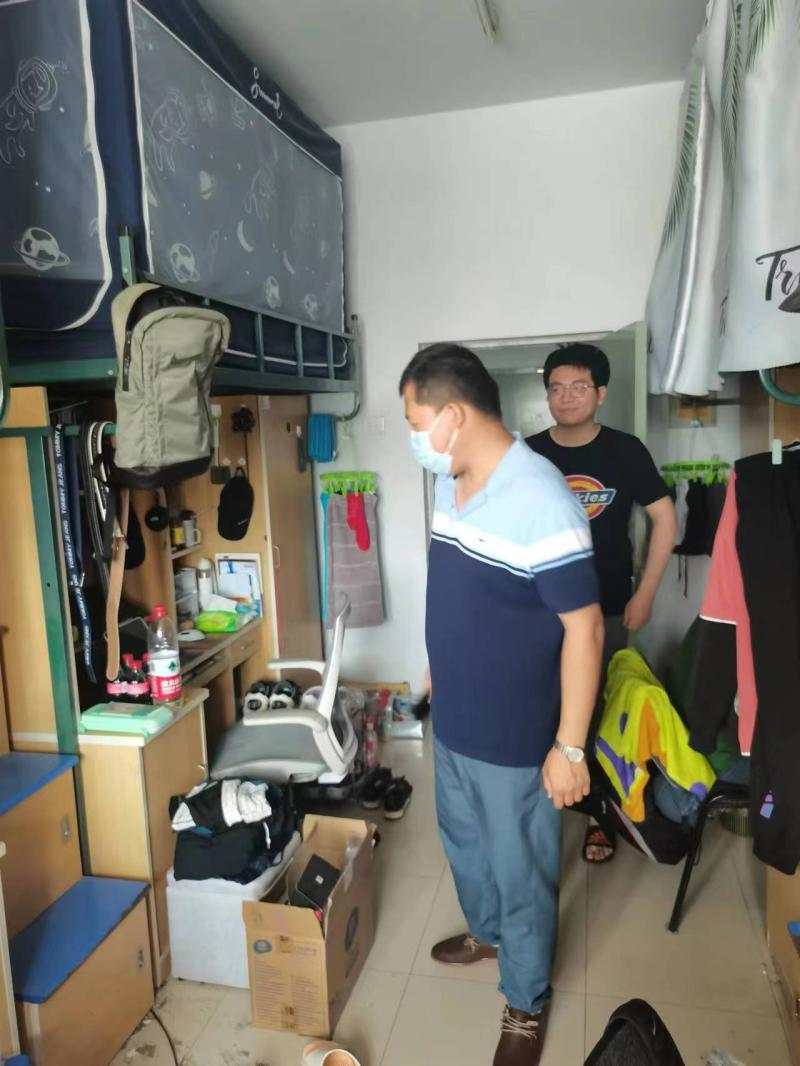 本科生辅导员严冬老师于2023年5月30日、6月2日深入南岭校区十三公寓2019级学生寝室,进行寝室安全隐患排查、了解学生的毕业去向情况和毕业生当前遇到的困难和问题,推进毕业生思政工作进寝室。