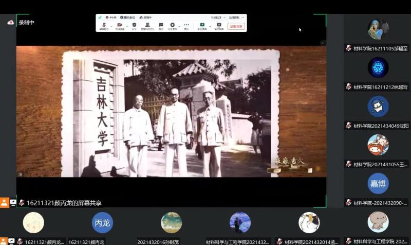 研究生、本科生本批次发展对象共五十余人在腾讯会议平台共同观看了宣传片《赓续传承兴伟业 砥砺前行铸辉煌——吉林大学深入贯彻落实习近平总书记对黄大年同志先进事迹作出重要指示工作回顾》、纪录片《巍巍吉大》,并进行认真学习研讨。