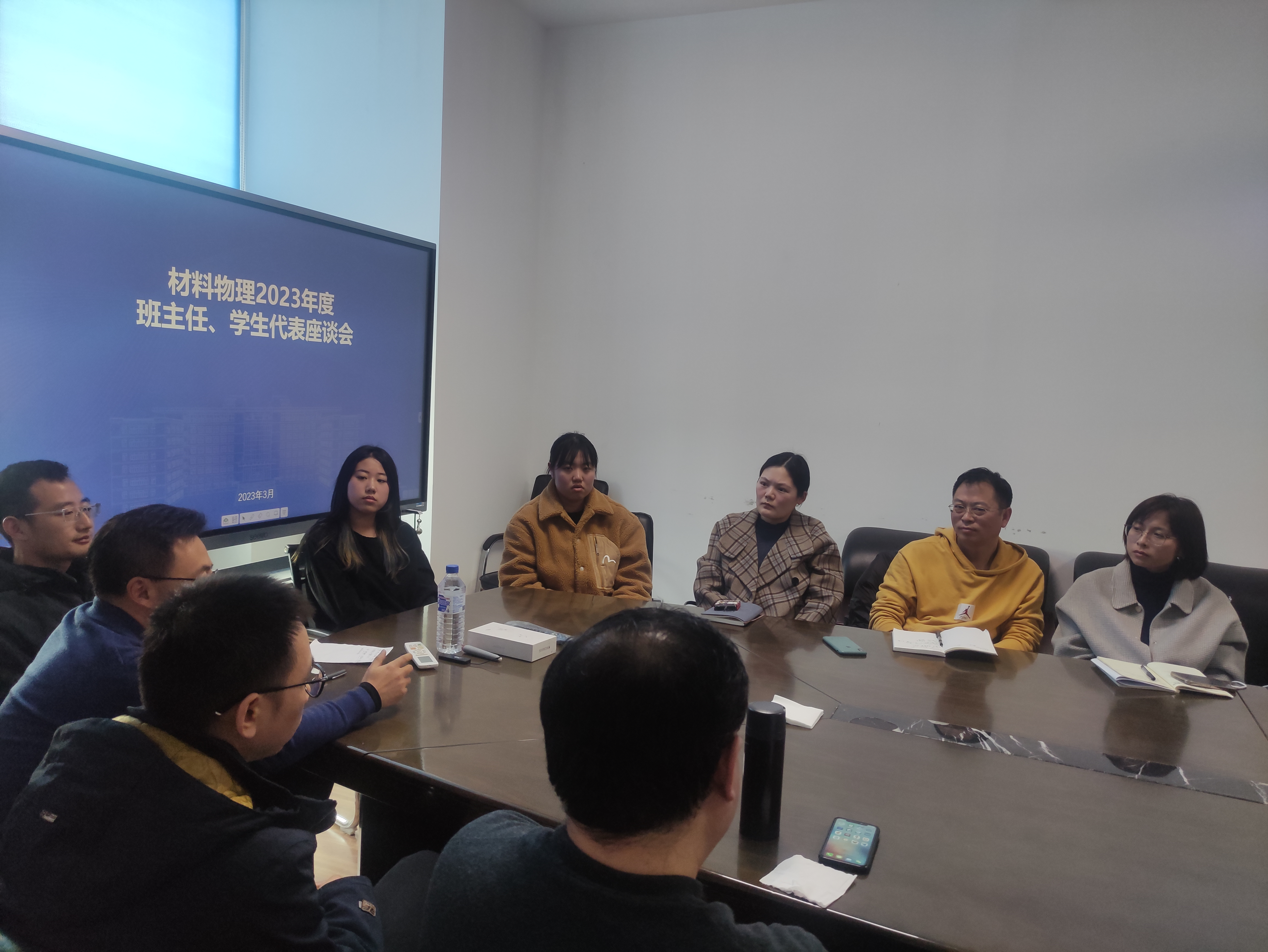于2023年3月16日中午12:00-13:00在唐楼D512召开材料物理专业班主任、辅导员、学生代表交流座谈会,共同探讨和交流学生近期所关注的热点问题。本次座谈会由材料物理本科生辅导员张晗禹主持,材料科学与工程博彩网