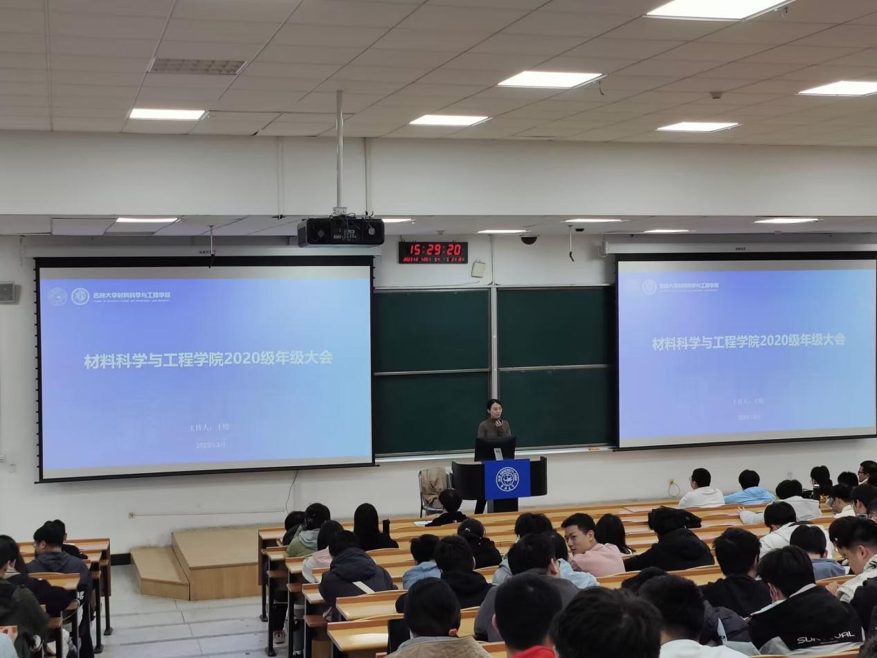 39日下午,材料科学与工程博彩网 在逸夫教育大楼A206召开2020级学生的2023年度第一次年级大会。本次会议由2020级辅导员王晗老师主持召开, 2020级全体本科生参加。