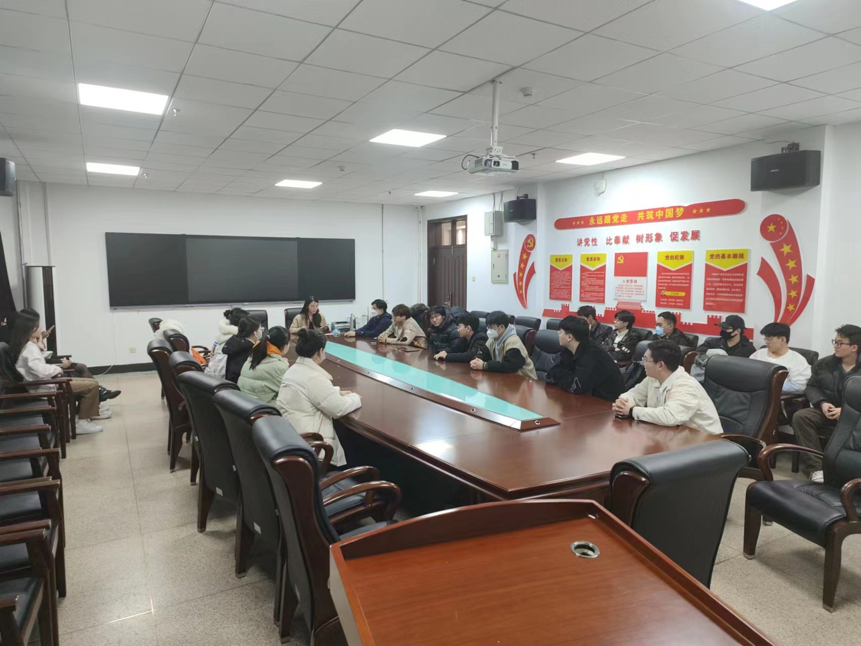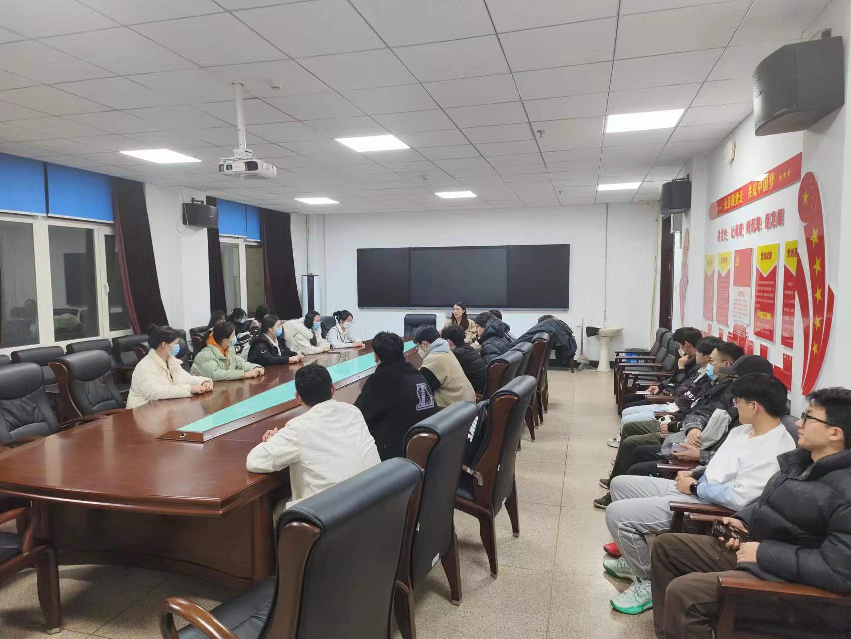 会上,王晗老师首先询问了各个班级的情况,特殊了解了每个班级内部分特殊同学的动态,以便能够更全面的掌握同学们的状态信息。其次,王晗老师强调了学习的重要性,告知班委们一定时常关注班级同学的学习状态和成绩,同时对寝室消防安全进行了强调,提醒班委切不可麻痹大意,要做好监督工作,最后,针对毕业后的规划,王晗老师提前与班委们进行了深入的交流沟通,给予了对大家极其有价值的信息。
