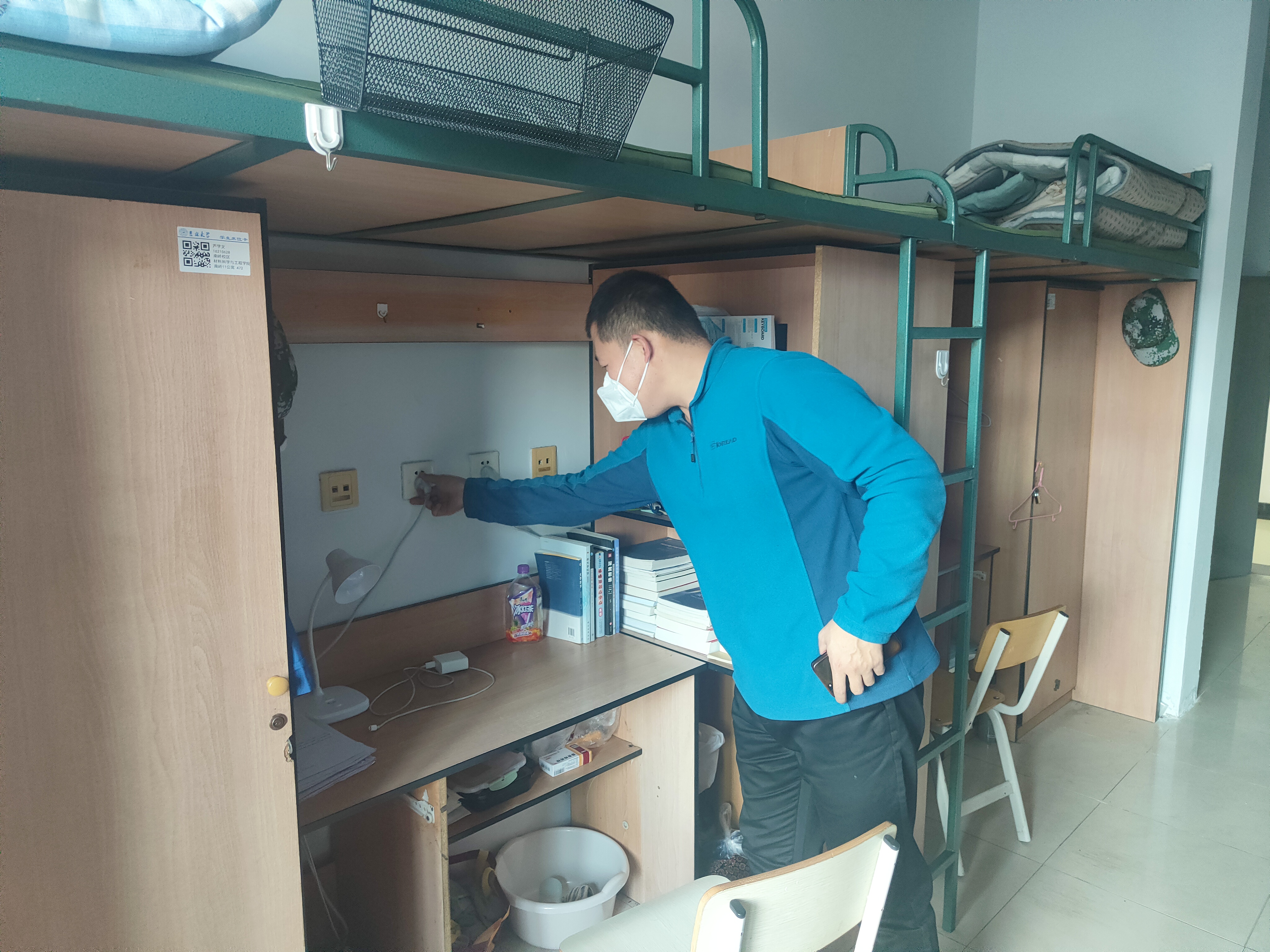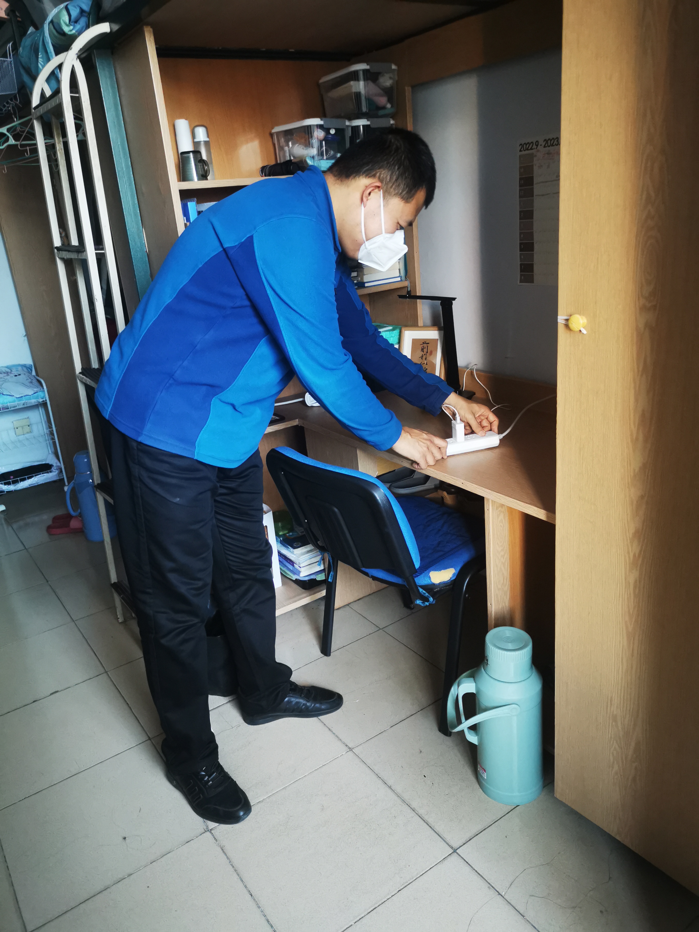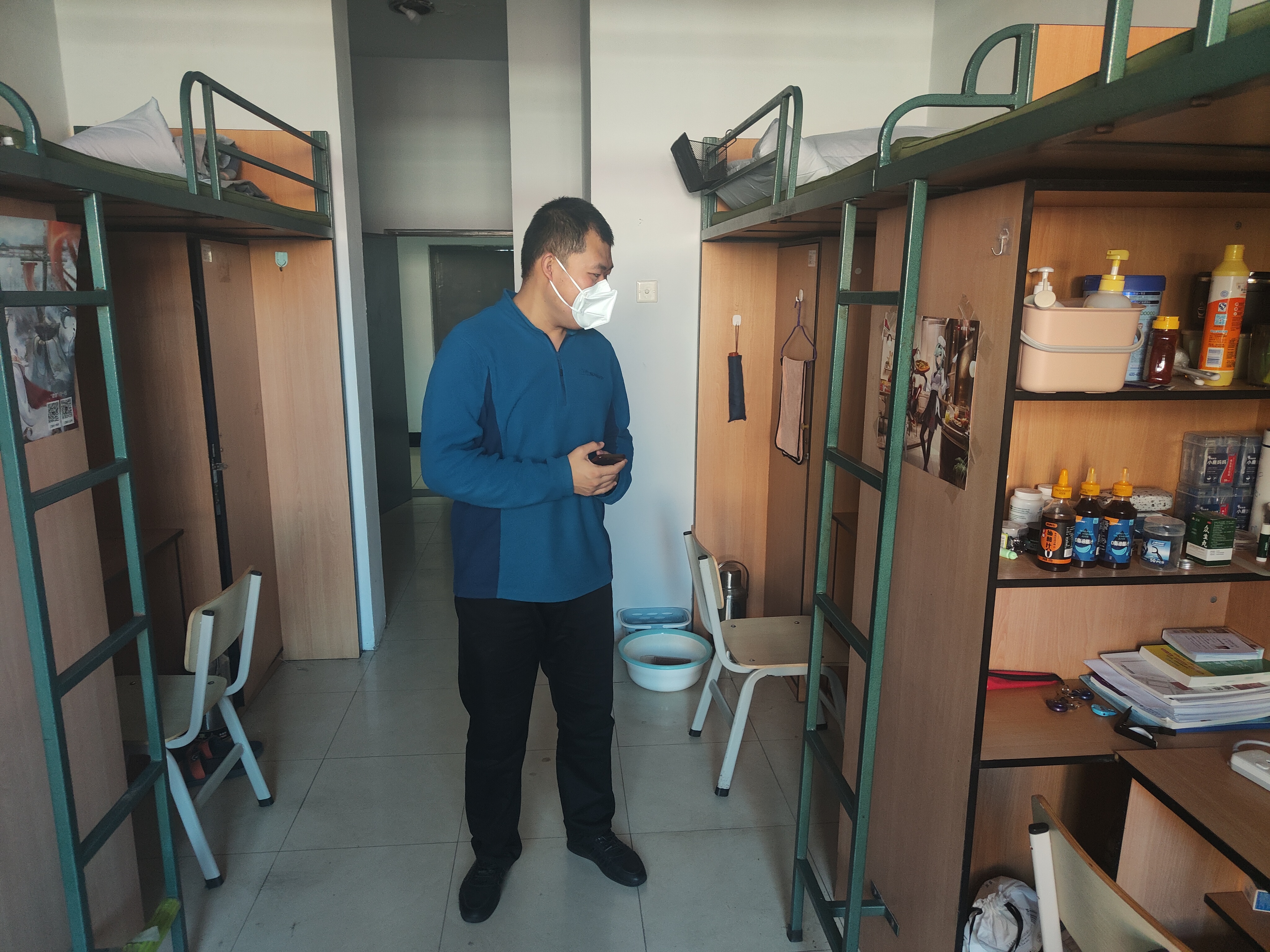 在走访寝室过程中,严冬老师逐一检查学生离校情况,认真核查寝室人员变化并对无人寝室进行全面检查,重点检查了用水、用电安全及卫生情况。检查完毕后关闭门窗、断水、断电并封门;对目前仍有学生未离校的寝室,围绕学生的计划离校情况、在校学习和生活状态等方面,严冬老师与同学们进行了深入交流,严冬老师希望在校同学要互相帮助,注重寝室安全和卫生清扫,并叮嘱同学们注意疫情期间的自我防护、加强身体锻炼,提醒同学们要保持学习状态,迎接期末考试的到来。