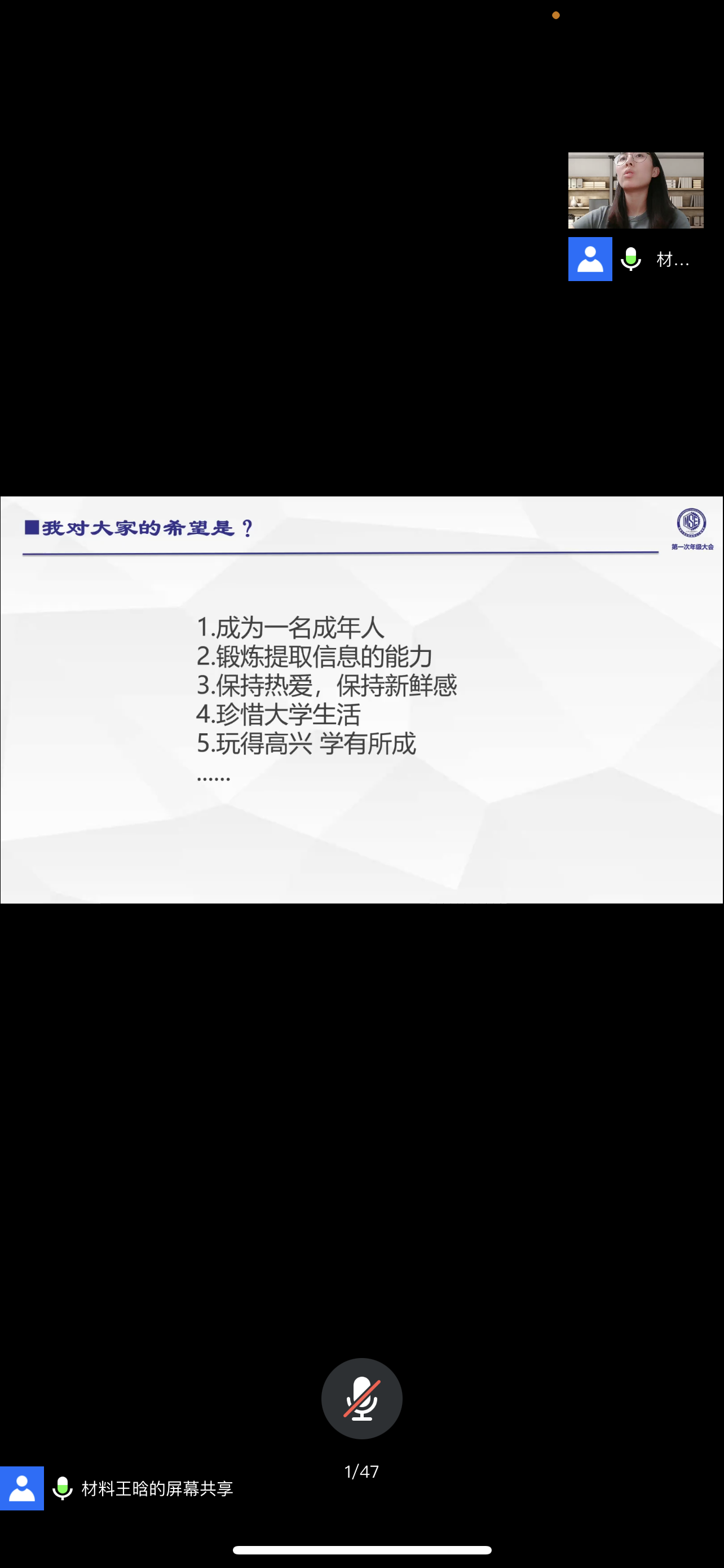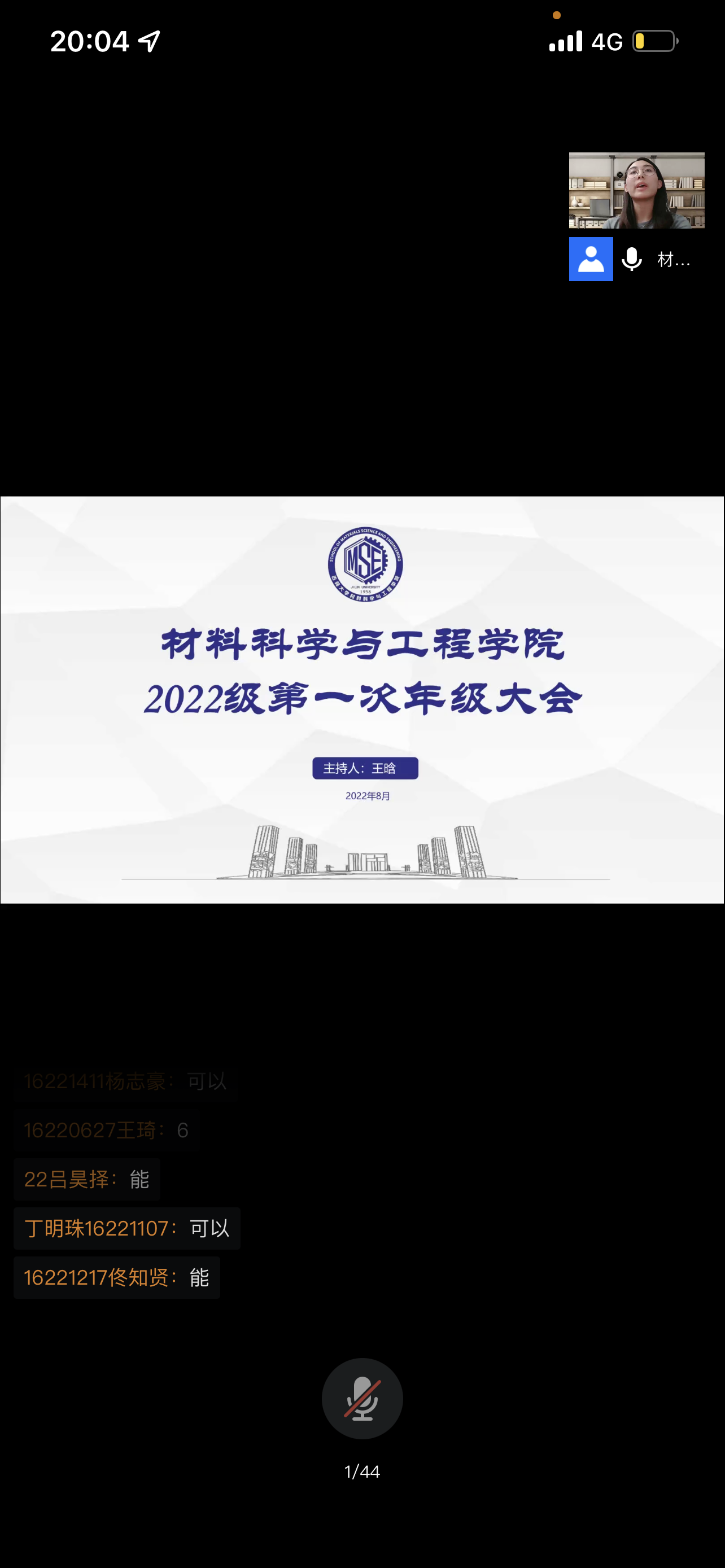 为迎接材料科学与工程博彩网 2022级新生到来,落实返校防疫工作,并帮助新生尽快适应大学生活,材料科学与工程博彩网 于8月28日晚六点,线上召开2022级新生年级大会暨入学教育大会。材料科学与工程博彩网 党委副书记兼副院长华蕊,2022级新生辅导员王晗老师,辅导员张晗禹老师出席本次会议,2022级全体新生参加。