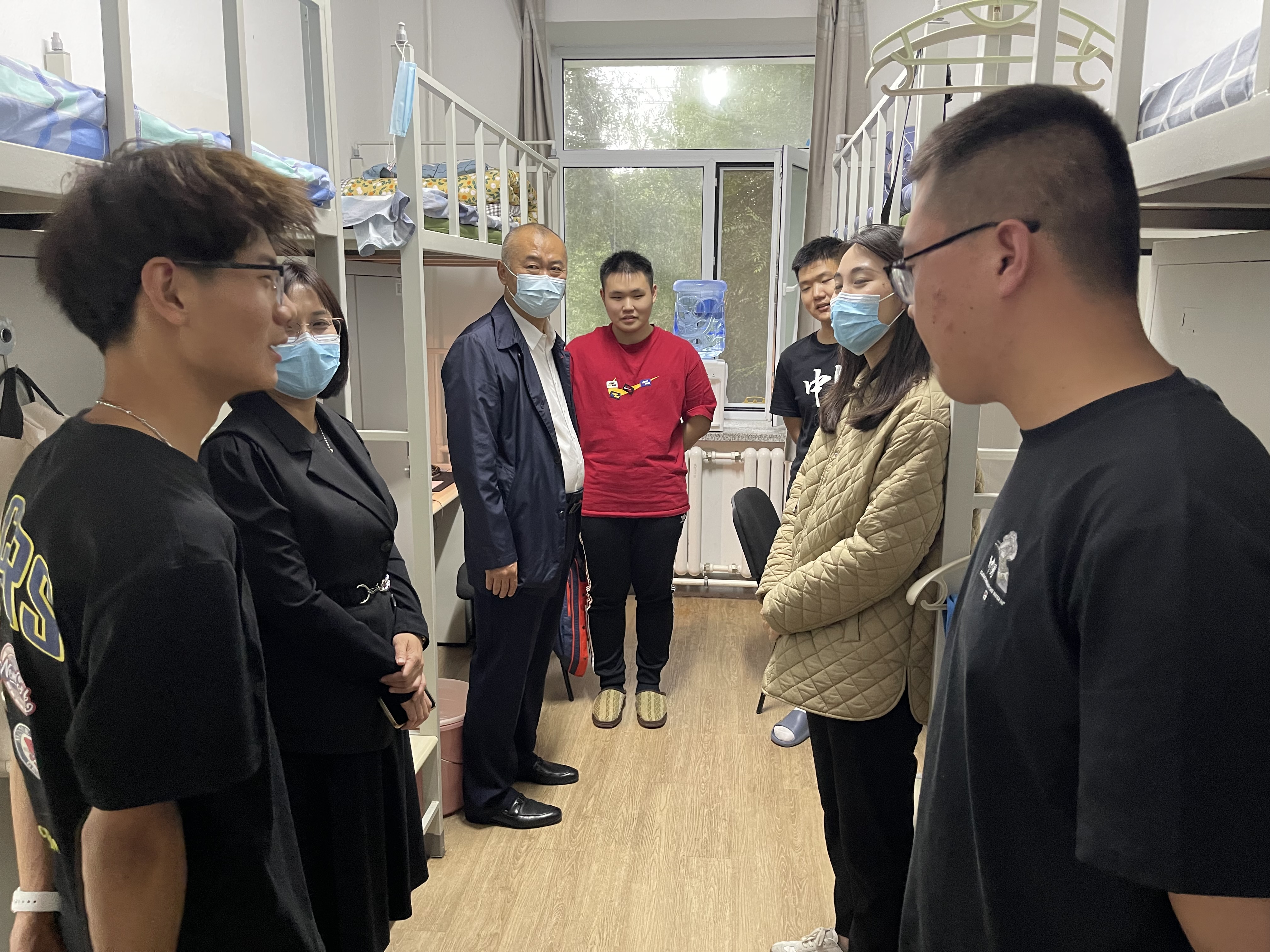 刘远书记详细询问同学们的入住情况和到校感受,并为同学们介绍博彩网 发展、学科建设等有关情况。细心叮嘱同学们天气早晚温差大,注意增减衣物,预防感冒。并激励同学们要抓住发展际遇,做好人生规划,学好专业知识,提升自身价值! 华蕊书记提醒同学们要注意宿舍用电安全,避免发生用电起火等情况;要做好宿舍消杀工作,定期通风,做好个人防护。王晗老师和张晗禹老师鼓励同学们快速融入集体,建立和谐融洽的人际关系。