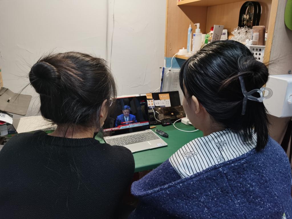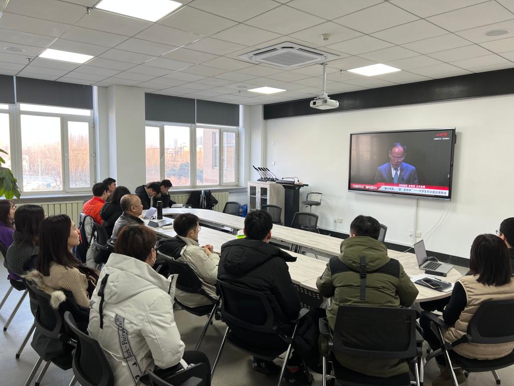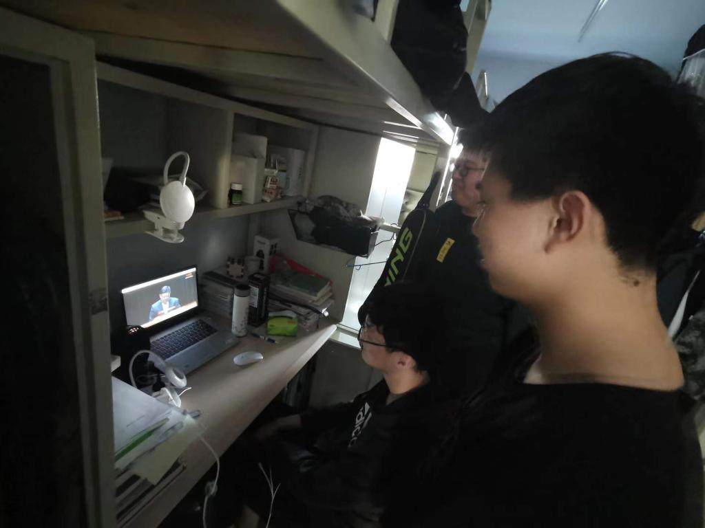 会,其余学生以寝室为单位分小组线上观看。