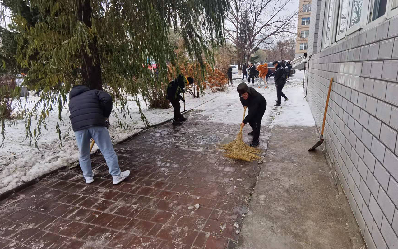 “吉大学子传真情,扫雪除冰暖寒冬”此次扫雪除冰工作,不仅使道路变得干净整洁、校内师生的出行更加安全便利,更是对学生开展劳动教育的有效途径。