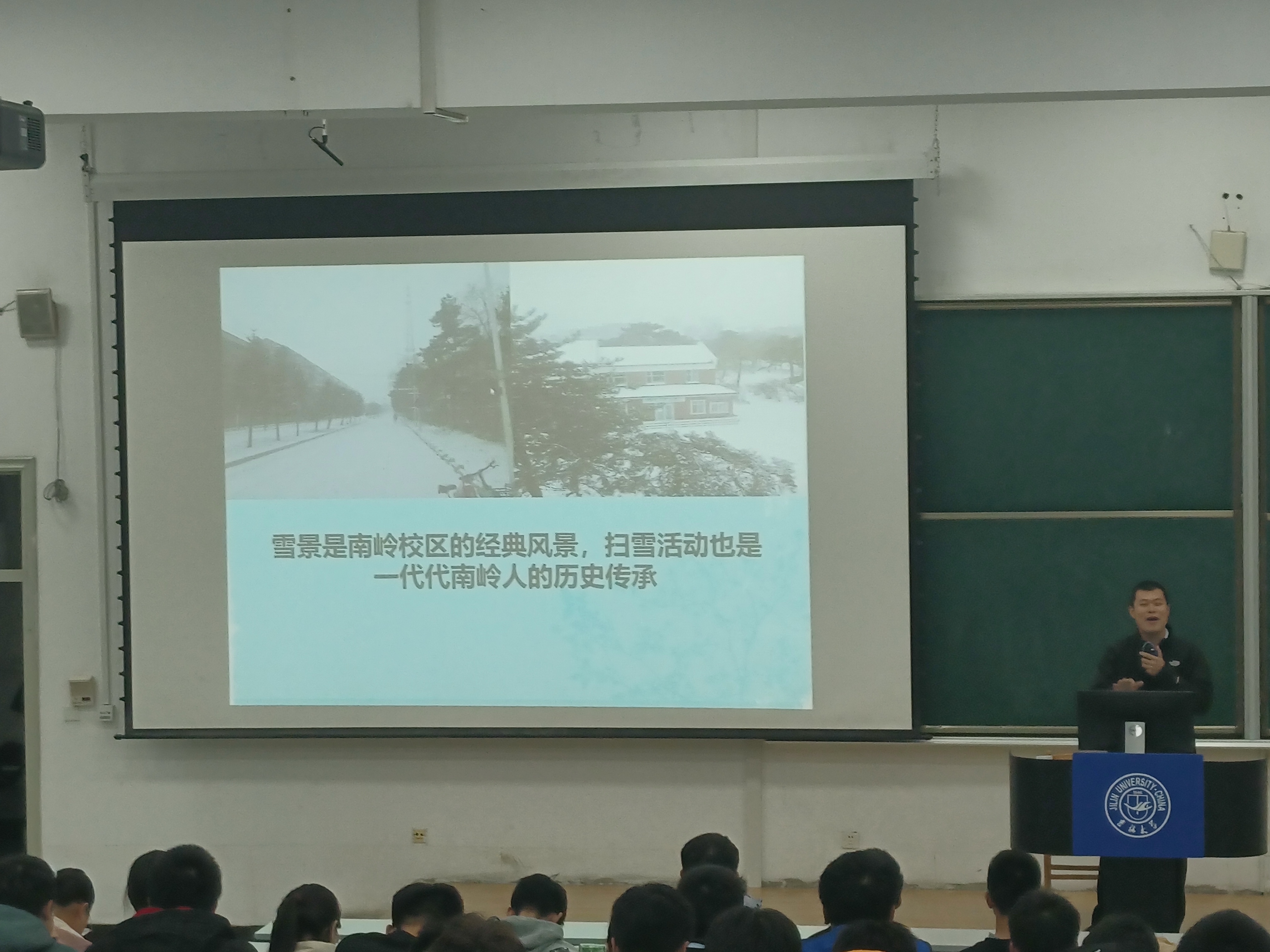 按照《吉林大学2021级新生入学教育工作方案》等相关工作要求,为进一步加强新生同学的劳动教育,使新生同学更深刻的理解劳动的价值,以认真的态度看待劳动,促进同学们形成正确的劳动观念,结合校区扫雪除冰专题会议的工作要求,为切实做好扫雪除冰工作,减少校园积雪结冰为广大师生带来的出行不便。2021级材料类全体学生于11月8日下午在逸夫教育楼召开劳动教育暨扫雪除冰工作动员大会,辅导员严冬老师主持,2021级全体新生参加此次活动。