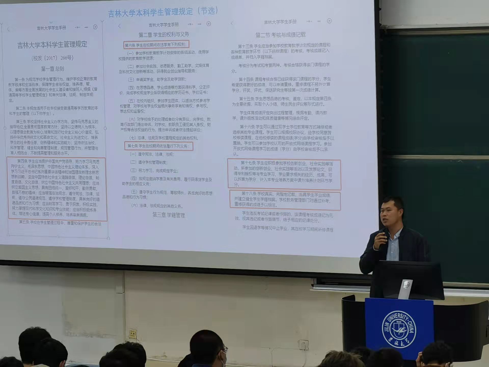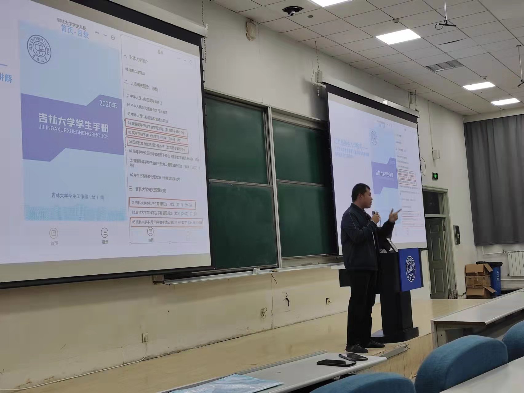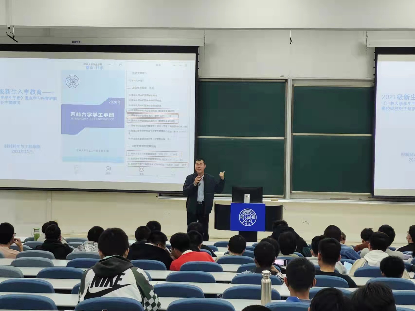 按照《吉林大学2021级新生入学教育工作方案》等相关工作要求,为了让新生同学能够更快的适应大学学习,使新生同学完成从高中到大学,学习和生活模式的转变,引导学生提高自我管理、自我教育、自我服务能力,结合近期相关事件案例,特组织2021级材料类专业学生集体学习《学生手册》。