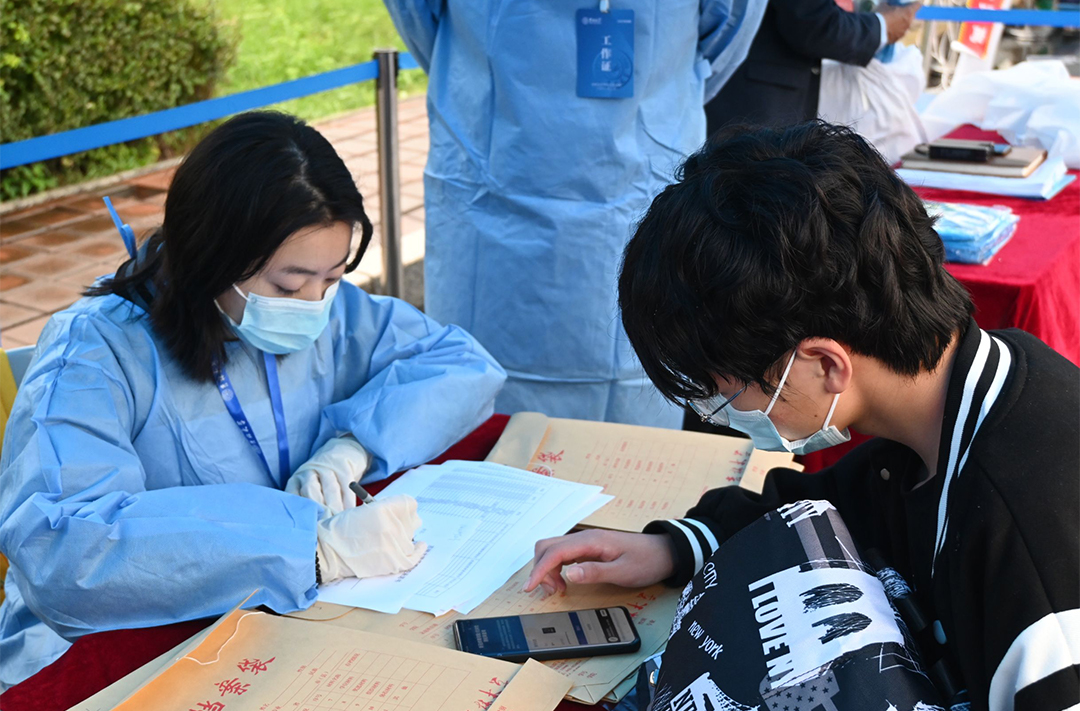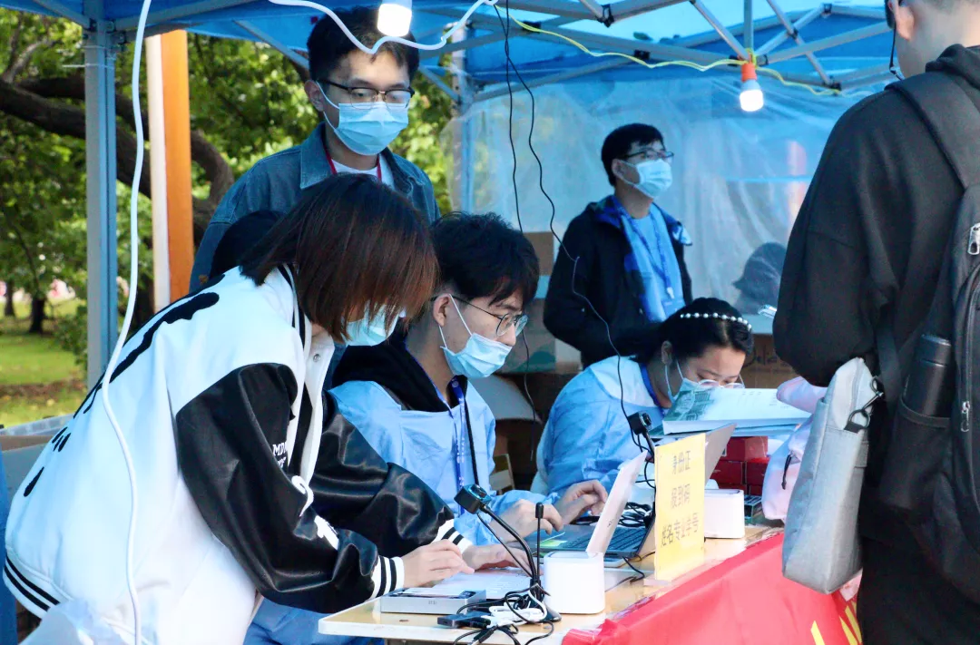 报到处;报到处的志愿者们负责检查新生上交的行程卡、吉祥码与核酸检测博彩报告