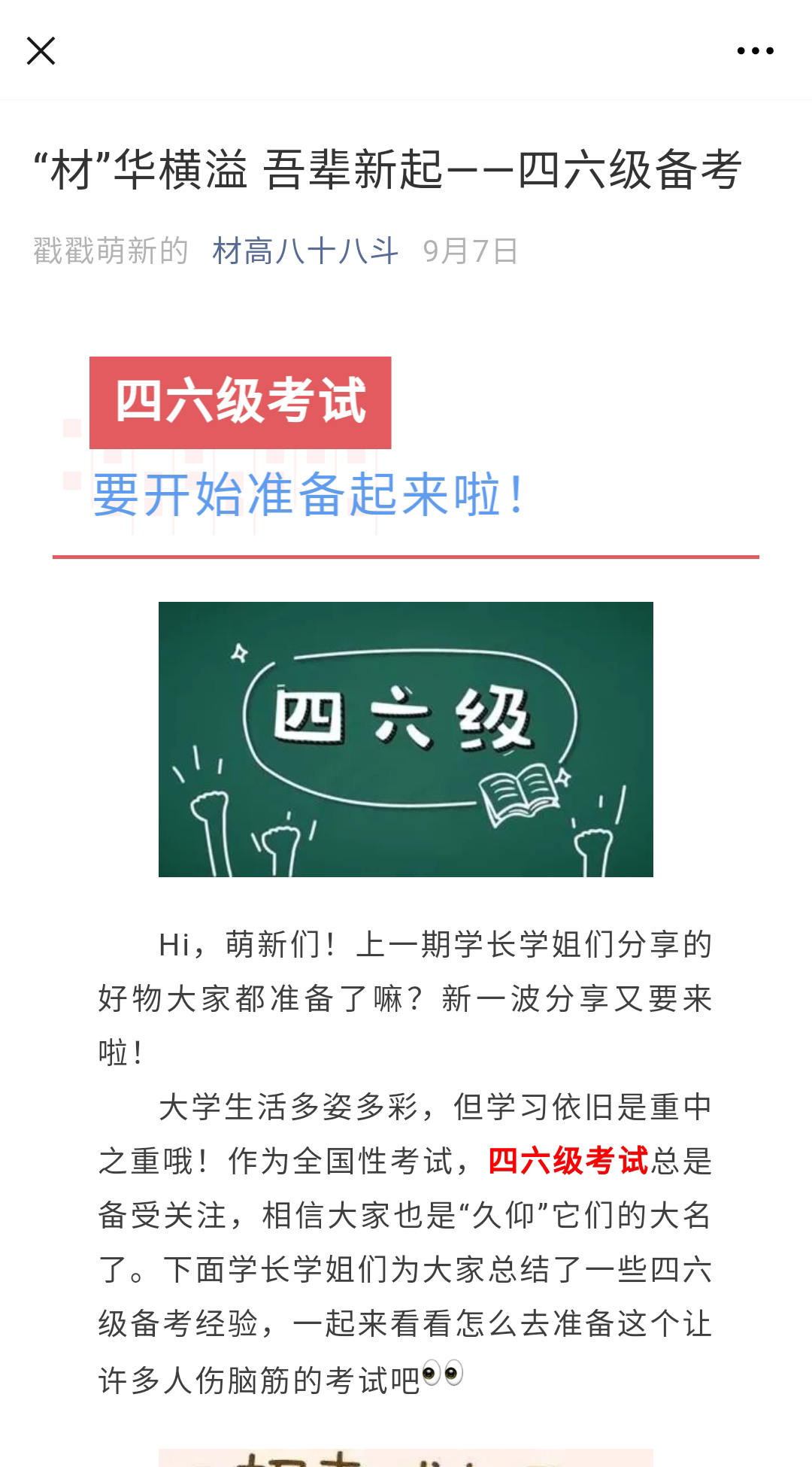 的温暖与关怀,在学习方面,从四六级备考到国奖介绍,让新生提前了解大学学习生活,为同学们做出最详细最有用的攻略。