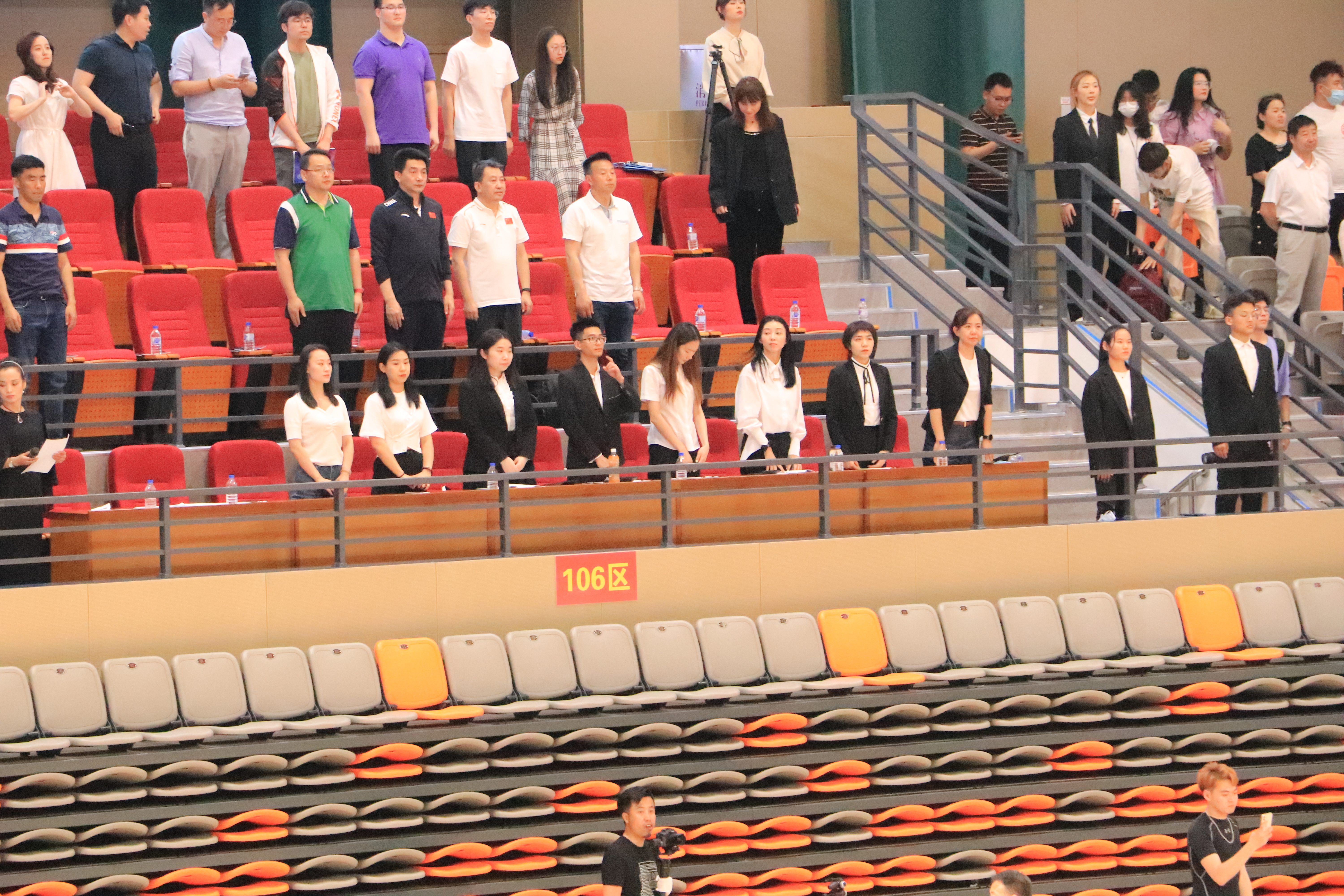 的院旗、院牌手再次回到比赛场地参加闭幕式,裁判、评委进行点评后,尹君老师安排了比赛后的啦啦操彩排任务。最后,在大家的掌声中,阳光体育啦啦操公开赛闭幕式圆满完成,啦啦操公开赛顺利结束。