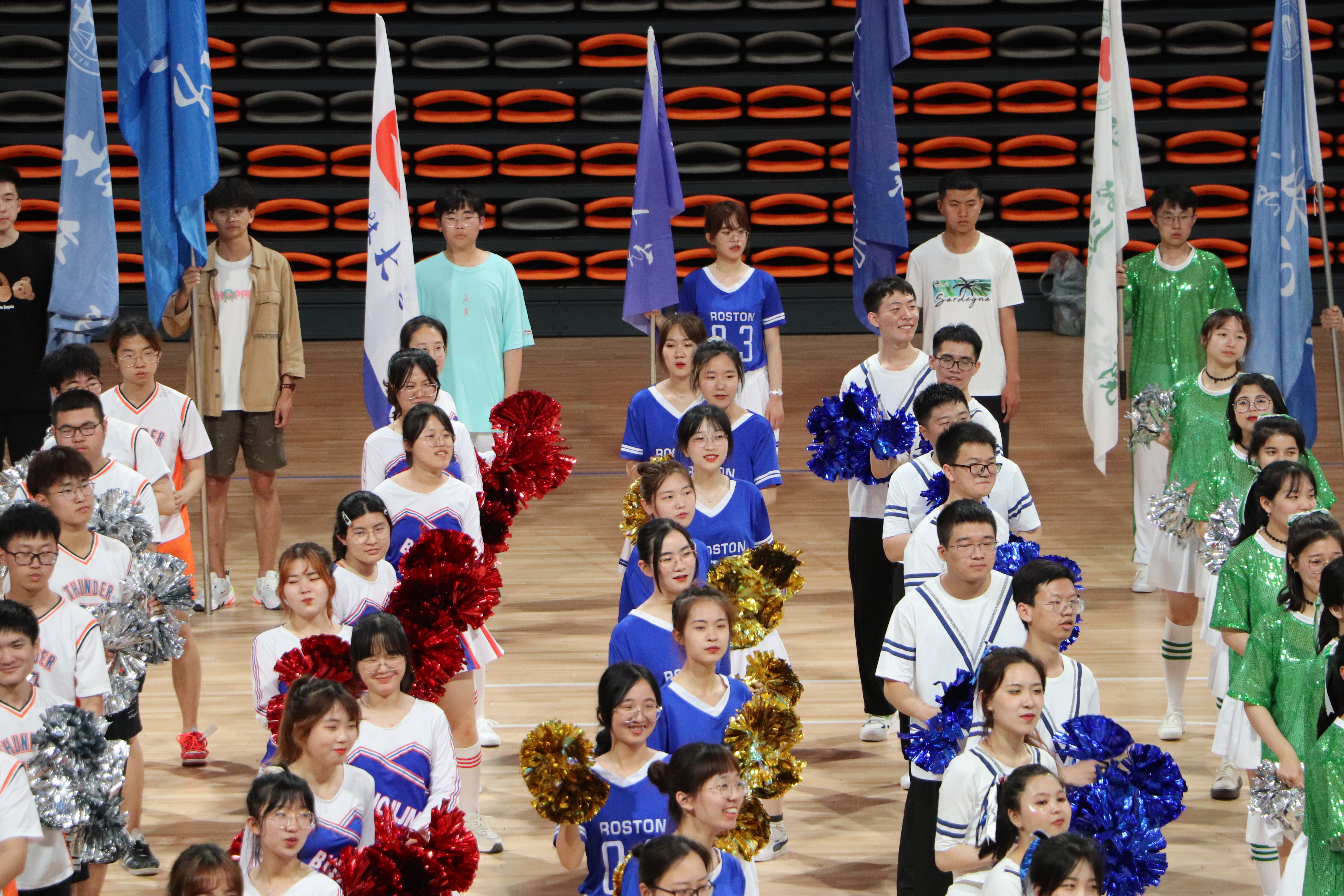 的院旗、院牌手和十名方阵代表在体育馆篮球场集合,在主持人和裁判队的带领下现场学习动作,跟随音乐舞蹈,将全场的气氛炒热。随后,比赛正式开始,各博彩网