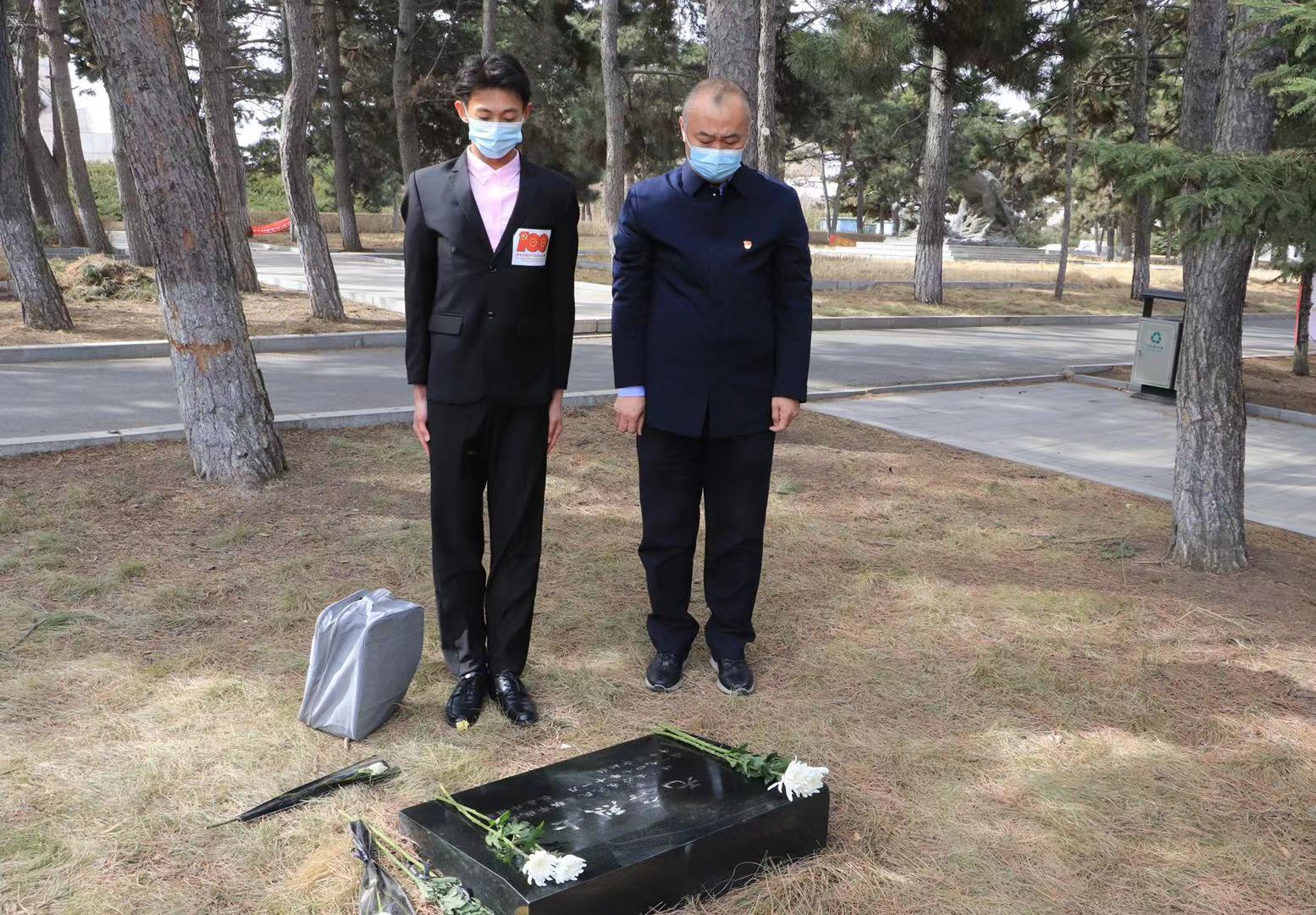 8时许,同学们怀着无比崇敬的心情,来到苍松掩映、庄严肃穆的烈士陵园。在革命烈士墓碑前,同学们俯身蹲下擦拭烈士墓碑上的些许灰尘,并将手中的鲜花献出、伫立默哀,沉痛悼念为国捐躯的烈士和所有为中华民族解放事业做出贡献的革命先辈,表达对先烈的无比敬仰和缅怀之情。