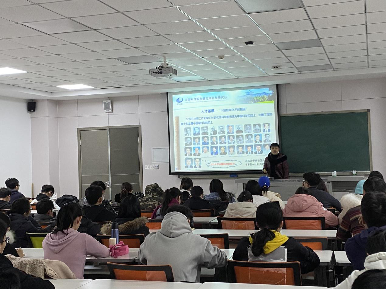 长春应用化学所(以下简称应化所)教育处刘靖宇处长、邢晶老师、周敏研究员,为同学们讲解中科院系统的保研、考研相关资讯。
