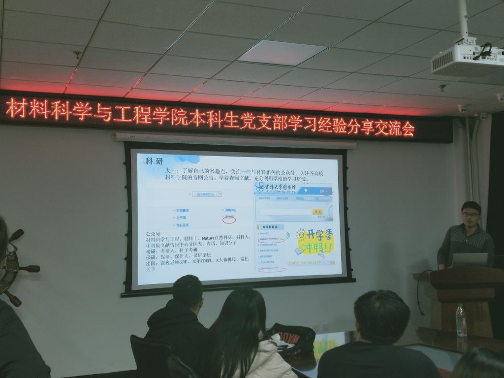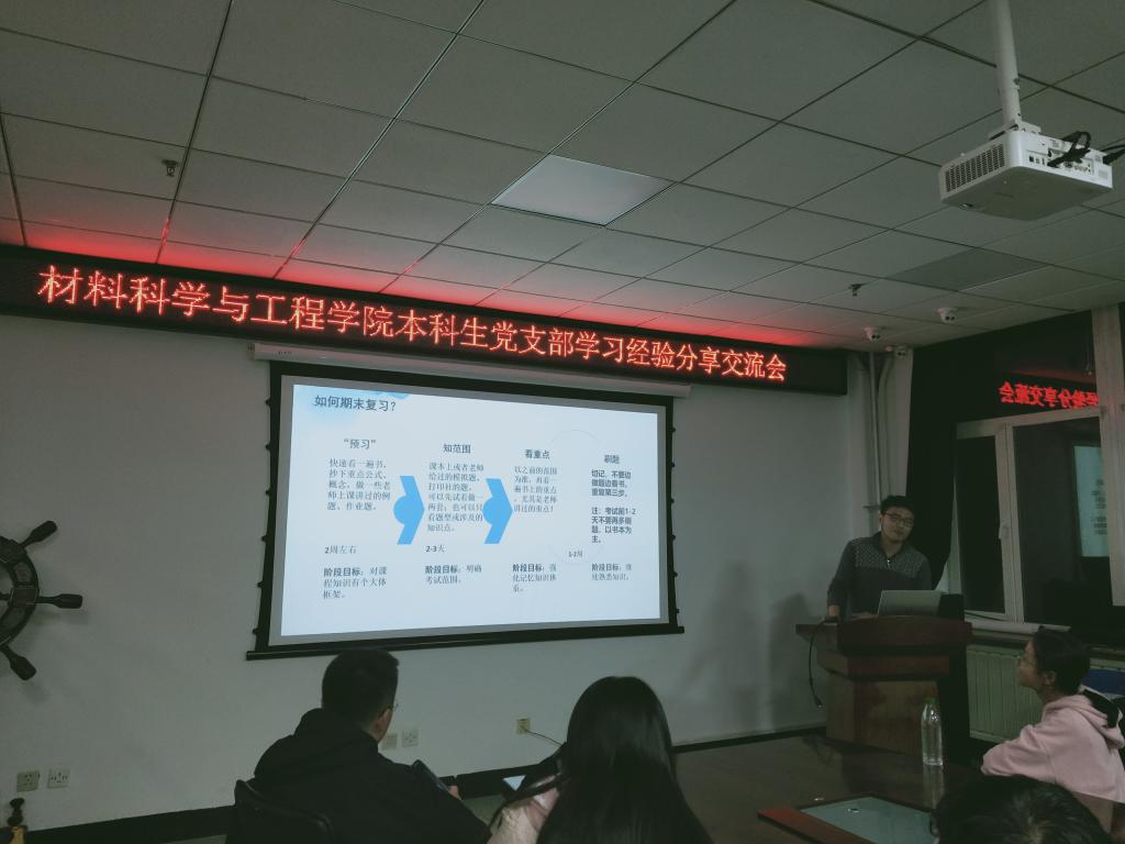 于2019年10月17日晚在逸夫机械材料馆410会议室举办本科生党支部学习经验交流会。此次交流会邀请了5位保研成功的2016级党员或预备党员来分享他们的学习心得和保研经验。