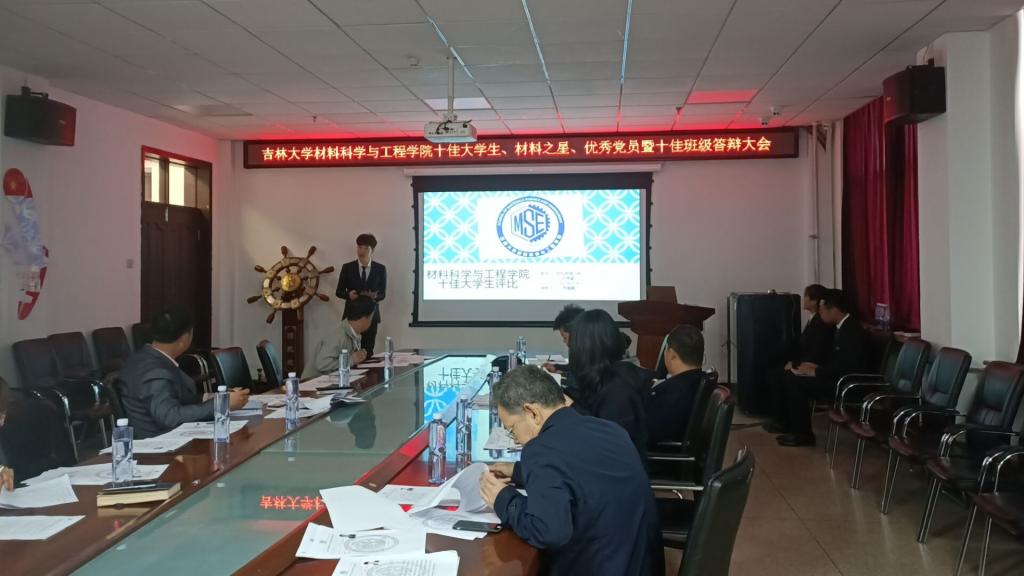2019-2020年度十佳大学生、材料之星、优秀党员暨十佳班级答辩大会”。党委副书记兼副院长李东生老师,各系主任及学生工作办公室的各年级辅导员老师作为评审出席了本次答辩会。