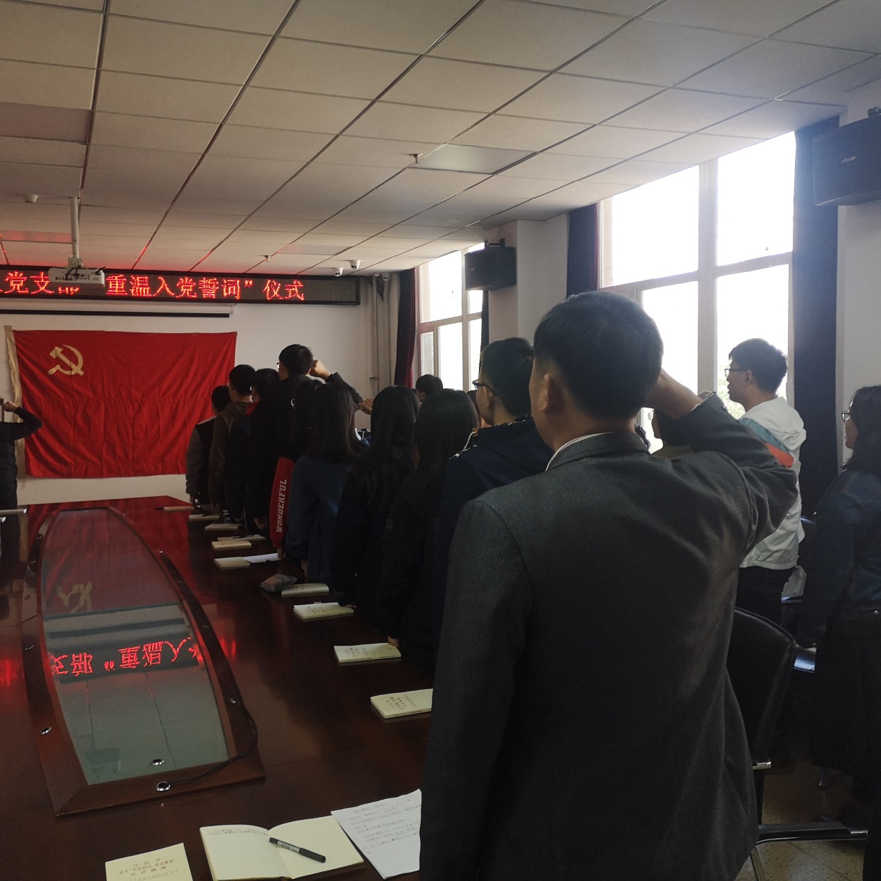 党委副书记兼副院长李东生老师的带领下,面对神圣的党旗,举起右拳,重温入党时的信念与理想,再次发出铮铮誓言。“我志愿加入中国共产党......随时准备为党和人民牺牲一切,永不叛党。”铿锵有力的誓言宣示着党员们坚定不移的政治信念,饱满激昂的斗志表达出为党的事业奋斗毕生的坚强决心。入党誓词是座右铭,是共产党员的行动指南,通过重温入党誓词,材料科学与工程博彩网
