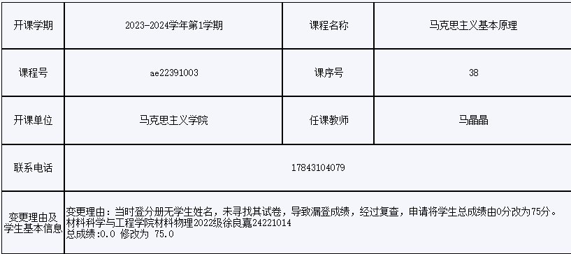 根据《关于进一步明确本科生课程考核等有关问题的通知》(校教字[2018]47号)文件有关精神,现对一下课程成绩更正进行公示:
