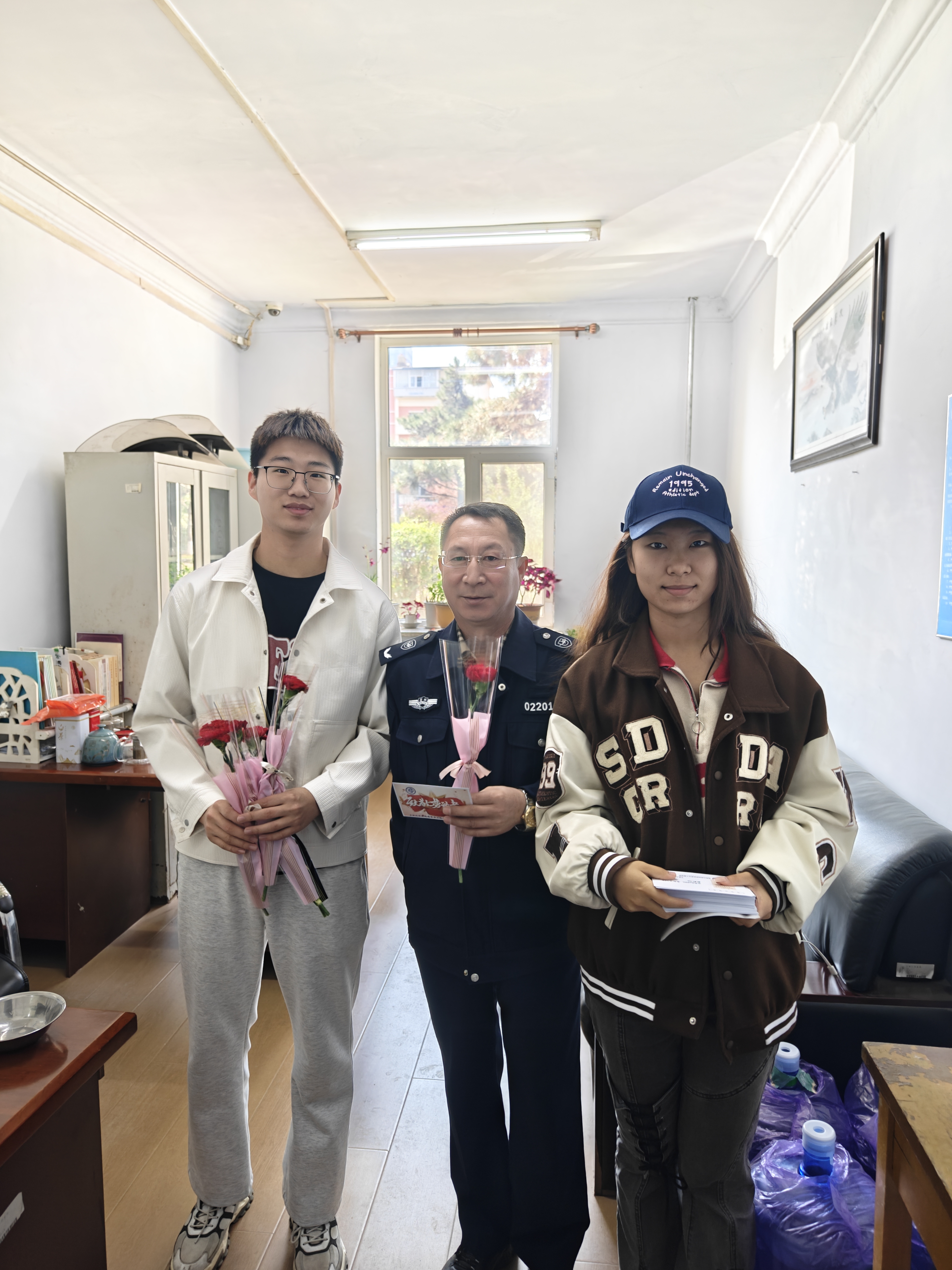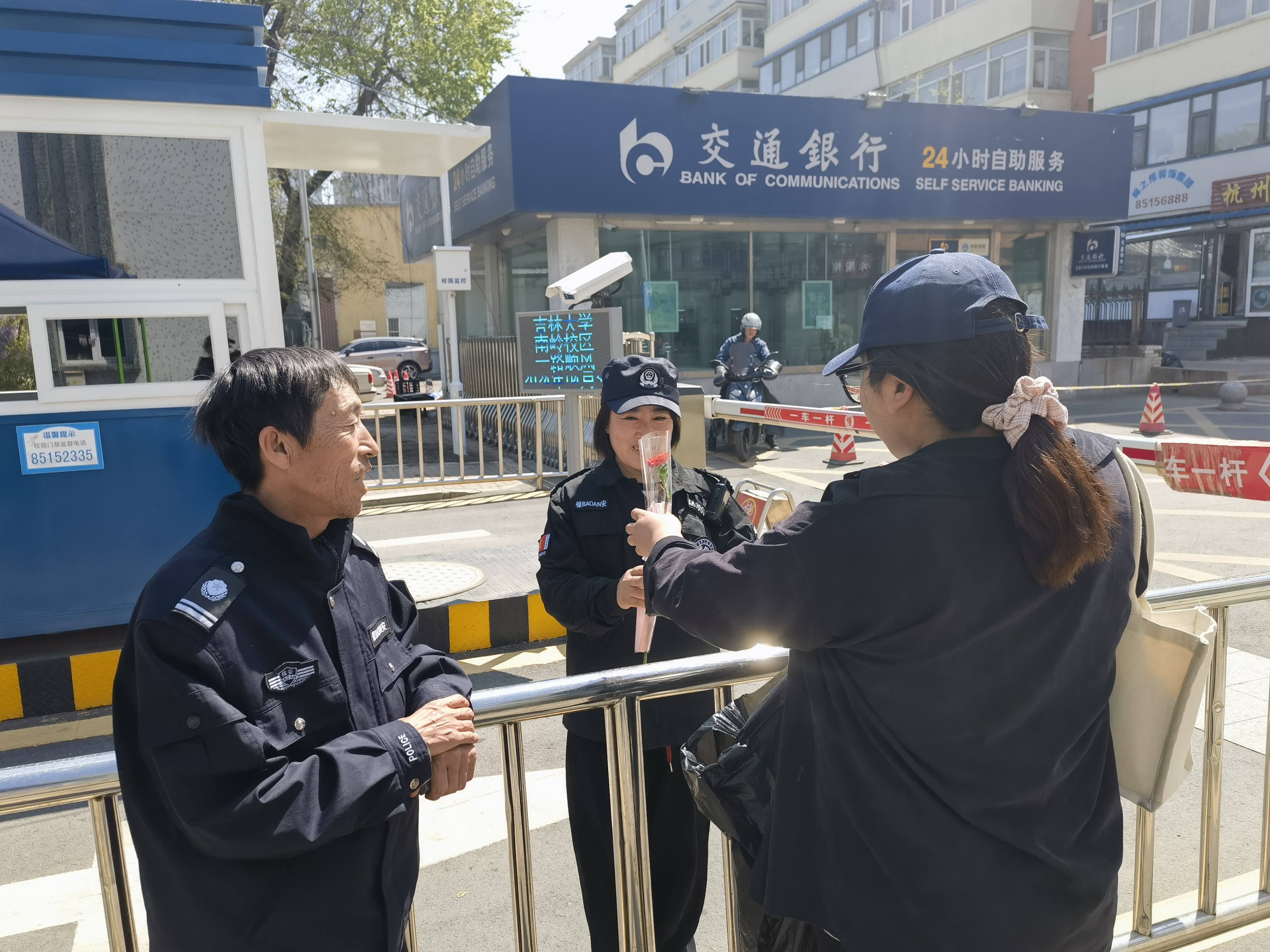 的东门、西门、南门,向辛勤守护校园的门卫叔叔阿姨们致以真诚的祝福,并送上了美丽的鲜花与精致的贺卡。