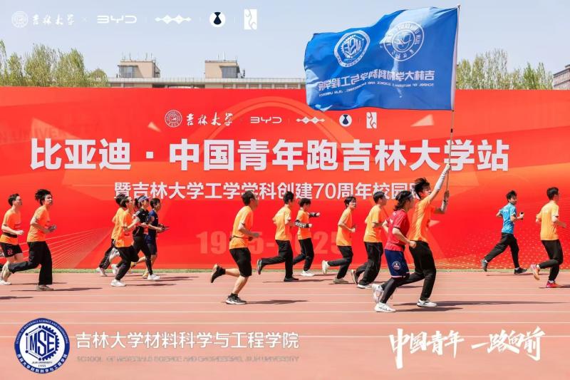 的四百名师生校友踊跃参与比亚迪·中国青年跑吉林大学站暨吉林大学工学学科创建70周年校园跑活动。