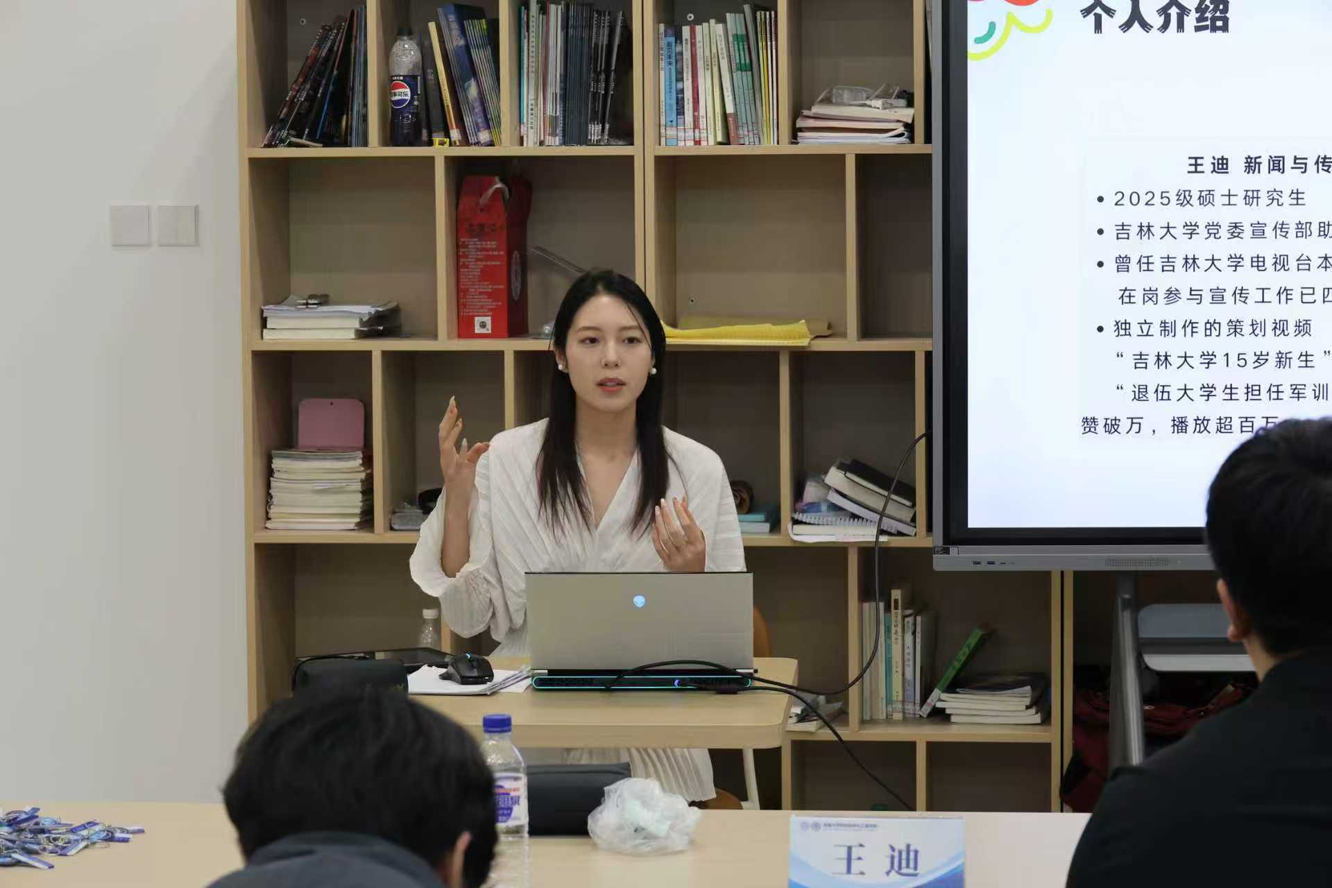 王迪同学以《视频选题策划的角度和方法与剪映剪辑基础教学》为主题,带来了兼具实用性与指导性的分享。在选题策划部分,她通过分析热门校园短视频案例,讲解了如何结合校园特色、节日节点、社会热点等策划出具有传播潜力的选题。在剪映剪辑基础教学环节,她针对剪映的核心功能进行实操演示,包括素材导入、片段剪辑、转场效果、背景音乐添加、字幕编辑、画质调整等,一步步引导同学们掌握剪辑的基本流程与技巧。
