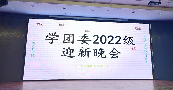 研究生思政秘书杨美晨老师,团委书记侯卓,学团委主席王巍翰,秘书部部长白云峰,宣传部部长姚作杨,组织部部长姜雨彤,学术部部长杜悦,生活部部长王芹,各位22级学团委成员以及各位22级新生们参加了本次迎新晚会。