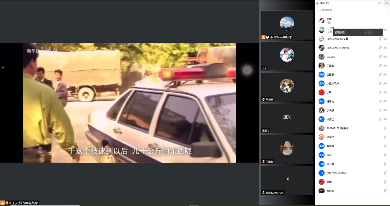 2022级博士班组织开展了“珍爱生命,远离毒品”禁毒主题班会,会议通过腾讯会议以线上的形式开展,2022级博士班的同学参加了此次会议,会议内容为观看题为“枪战、卧底、濒死...真实记录边境禁毒故事”的禁毒宣传纪录片。