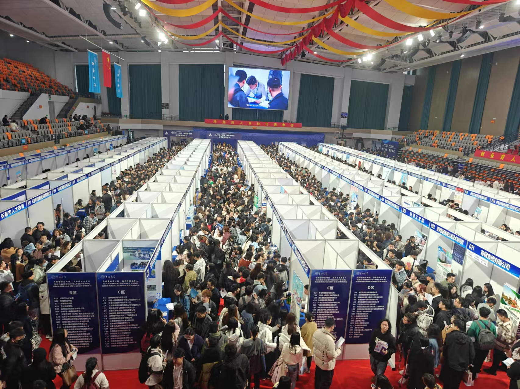 党委副书记曲贵文、研究生辅导员赵熙来两位老师组织带领百余名尚未落实就业去向的毕业年级研究生携简历参加2025届毕业生秋季双选会。