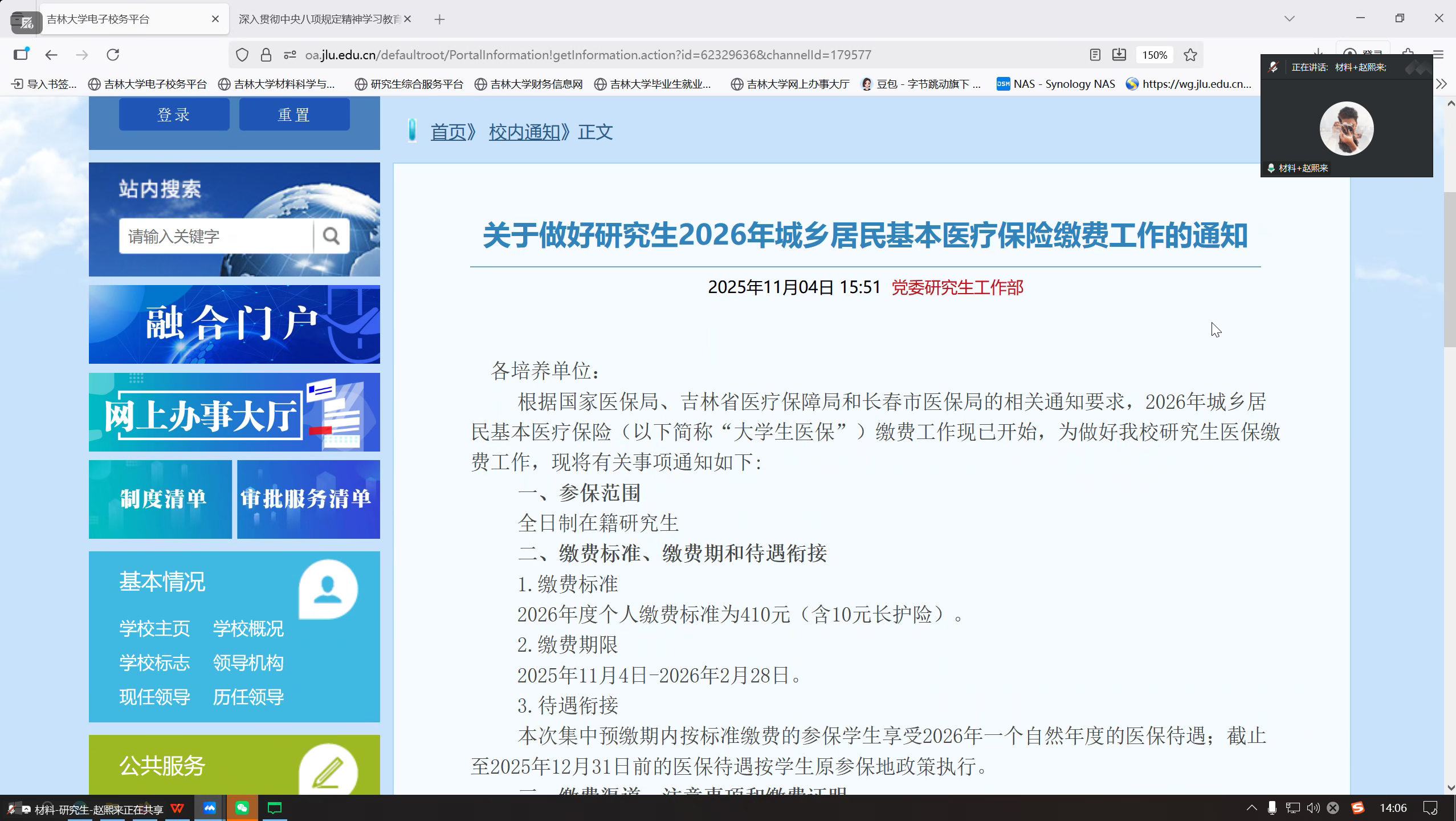 于2025年11月5日线上召开了2026年研究生医保缴纳政策解读会议。会议由辅导员赵熙来主持,博彩网